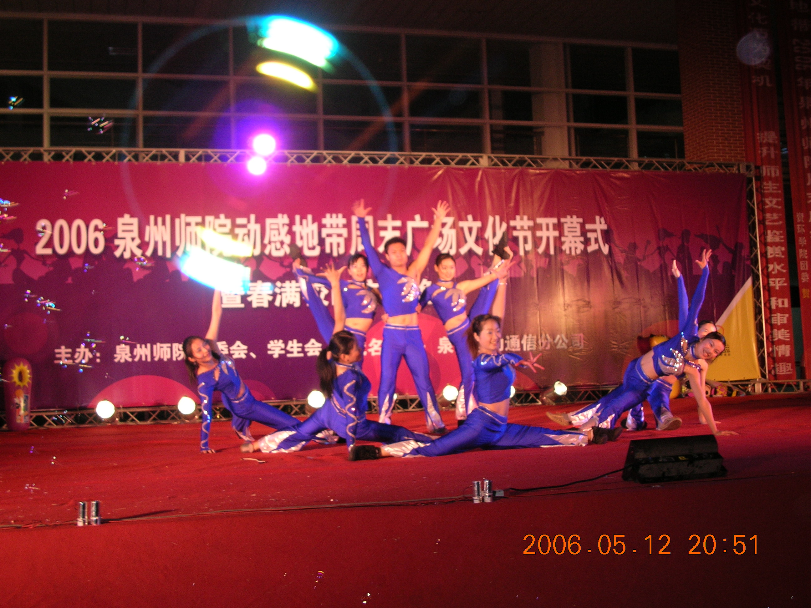 5月12日,由校团委会、学生会主办的2006泉州师院动感地带周末广场文化节开幕式暨春满校园文艺晚会在我校孙中山广场上隆重而热烈的气氛中拉开了帷幕。校党委副书记张舟、校团委副书记莅临开幕式现场。