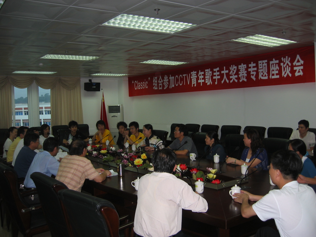 6月7日,Classic(鼓点)组合参加CCTV青年大奖赛专题座谈会召开。院长陈笃彬、党委副书记张舟、副院长林华东出席座谈会,校办、宣传部、教务处、学生处、团委等各部门的负责人及艺术学院领导与指导老师、Classic(鼓点)组合成员等参加了会议。座谈会由副院长王炳庆主持。