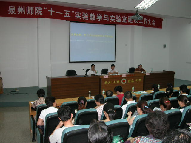 6月27日下午,我校在孙中山纪念堂第二学术报告厅召开“泉州师院‘十一五’实验教学与实验室建设工作大会”。院长陈笃彬,副院长王炳庆、林华东以及校部机关相关职能部门负责人和各二级学院院领导、专业主任、实验室主任、实验教学全体教师、实验室管理人员出席了大会。会议由林华东主持。