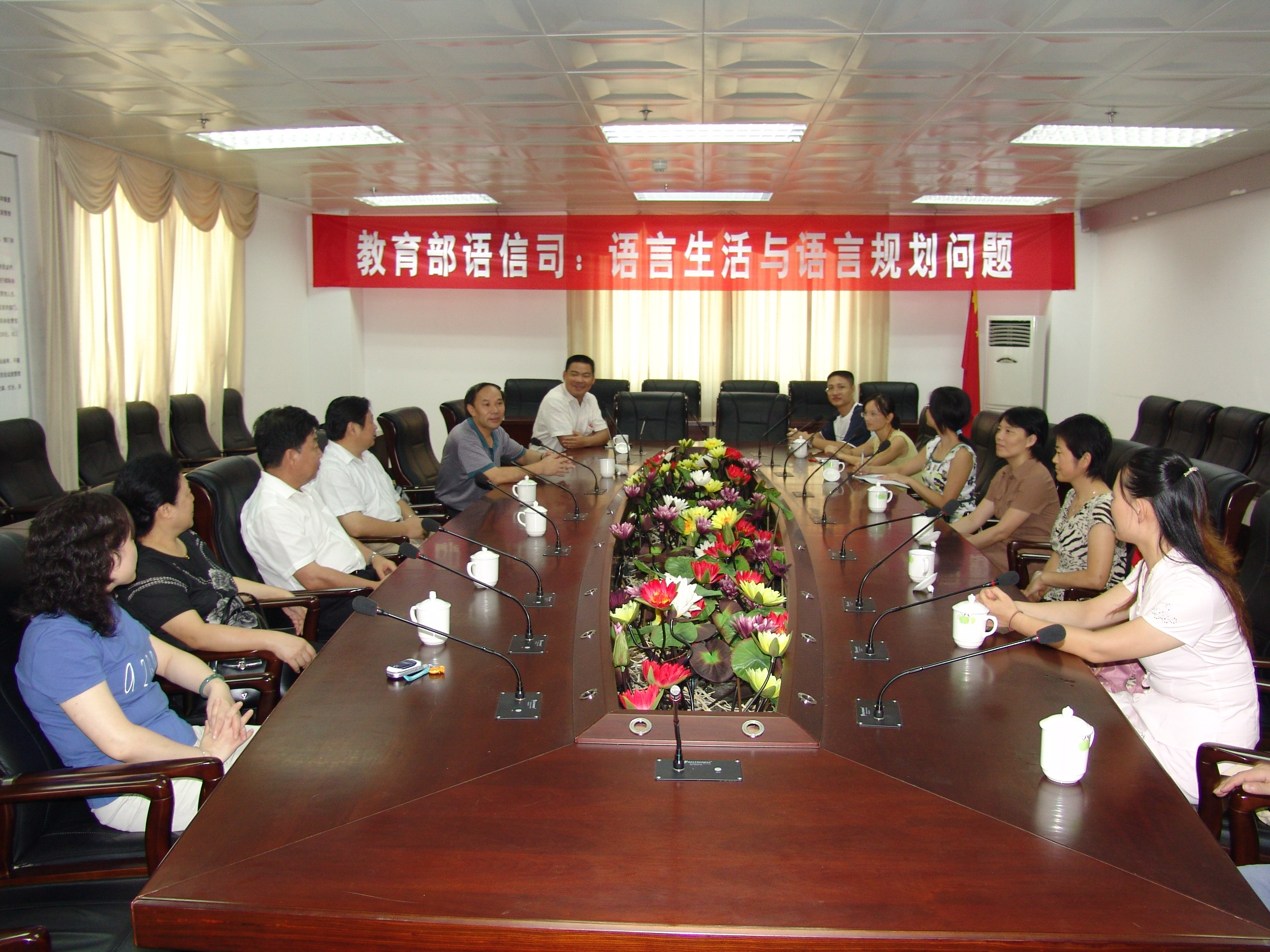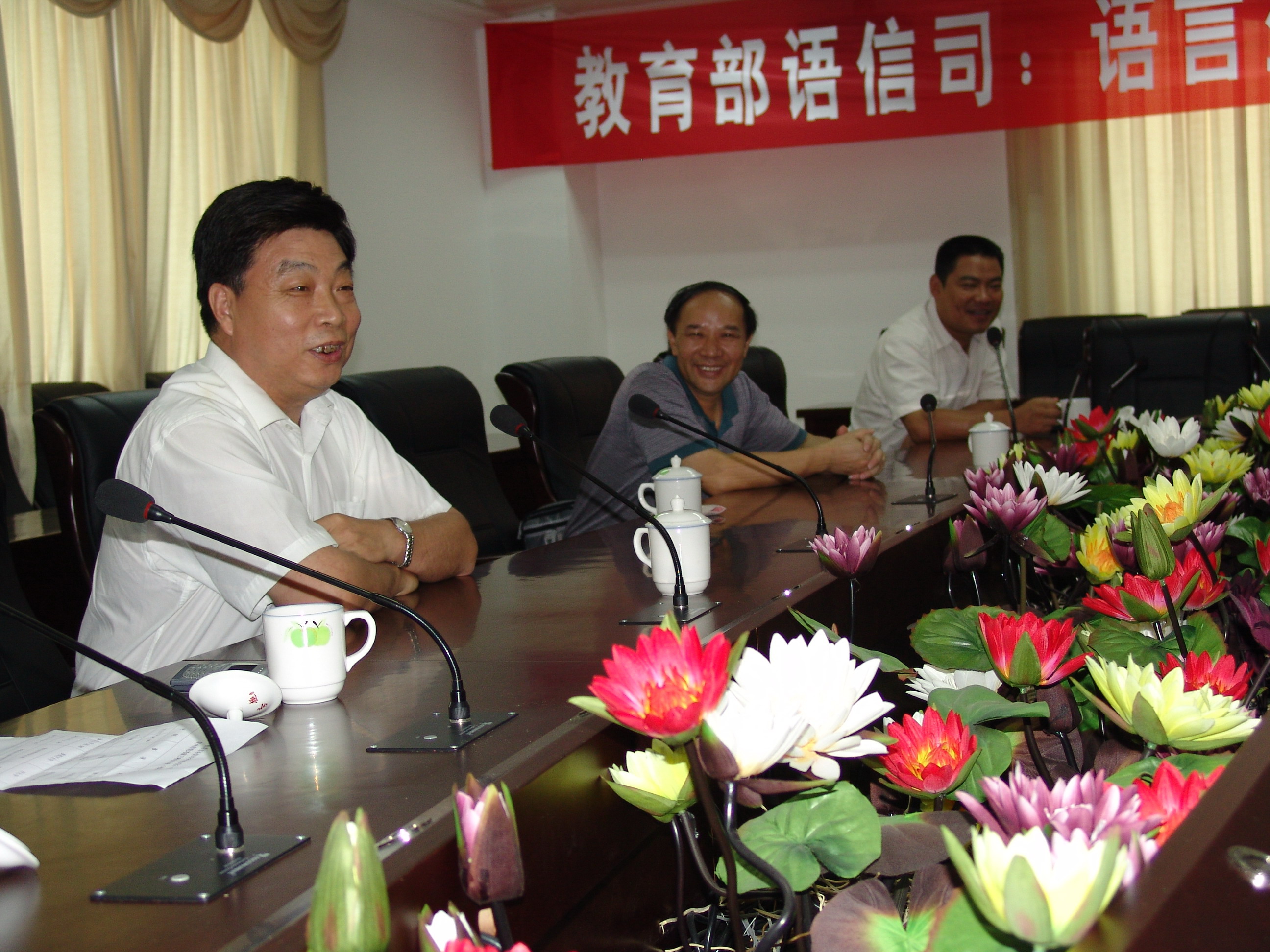 王副司长在李司长谈话的基础上,对人文学院的教师提出了三点希望:除了做好教学工作、普通话培训测试、推进汉语言文字学科发展以外,还要关注语言生活,把本身的研究工作和社会语言生活、国家的语言规划联系在一起;既要关注、做好语言本体研究,也要重视大有学问的语言应用研究,为国家的语言建设作出贡献;要注意吸收、引进新理论,特别是信息技术,关注现代新学科发展如网络交流等所带来的语言问题。