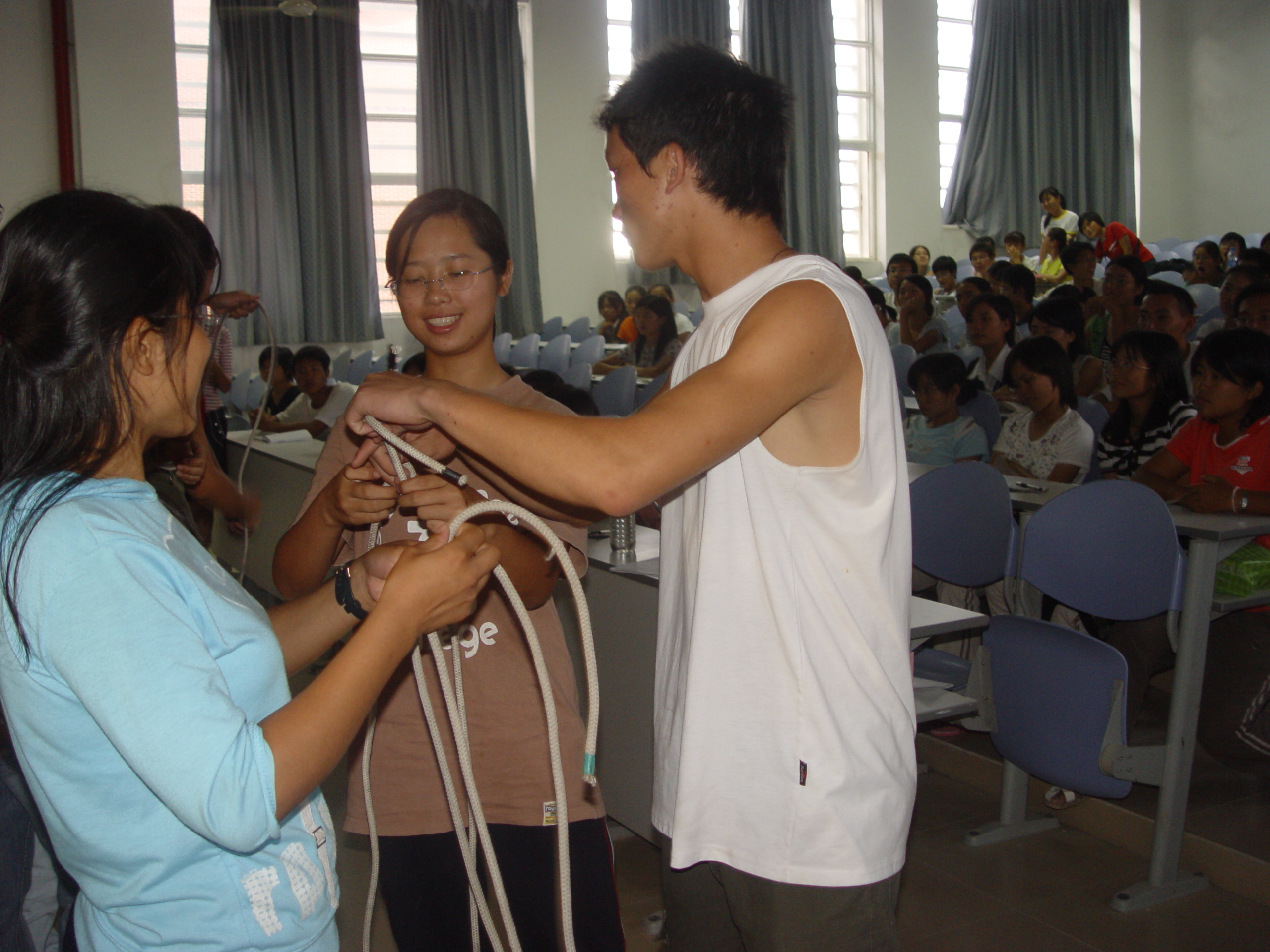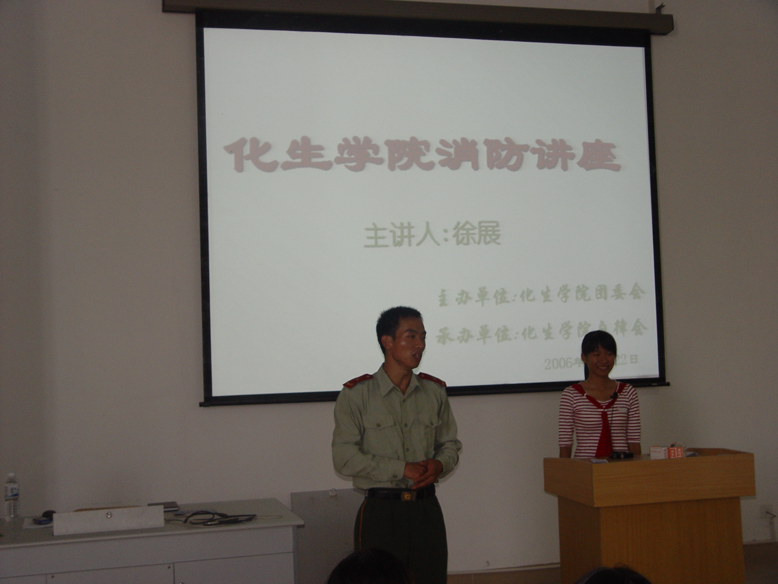 日前,化生学院举办消防安全知识讲座,本次讲座邀请了消防特警一中队的队长徐展教官为同学介绍消防安全知识,会上,教官以幽默生动的语言,结合生活中发生的火灾案例及图片数据等资料,详细讲授了消防火灾发生的原因、有关的法律法规以及如何扑救校园火灾等消防安全知识,分析详细入理,让大家受益匪浅。现场气氛热烈,在互动环节里同学们认真学习“结绳法”,积极参与应用练习,达到了预期的效果。