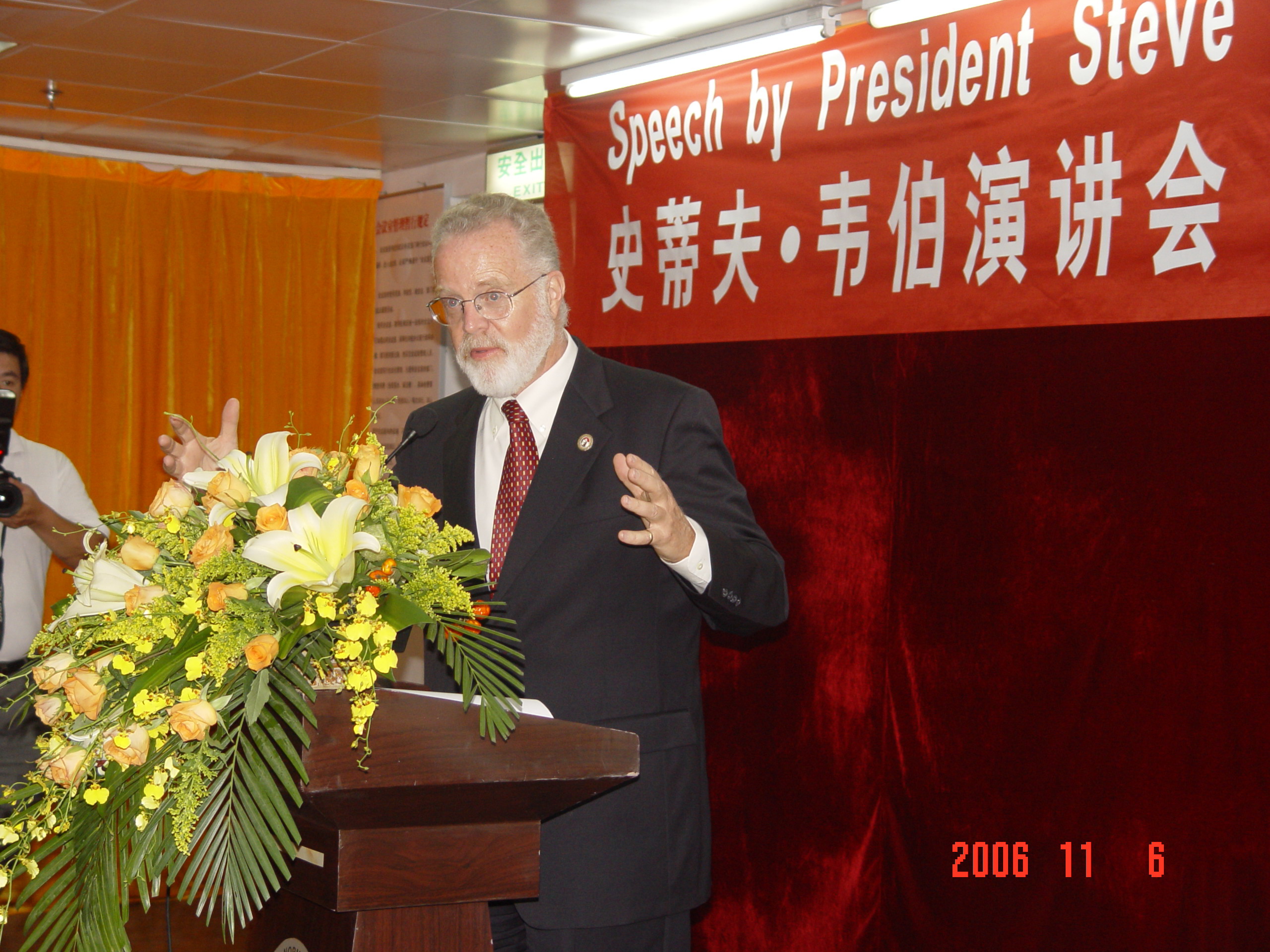 据悉,圣迭戈州立大学校长韦伯演讲会同日举行,演讲会由陈笃彬院长主持。(许旭生)
