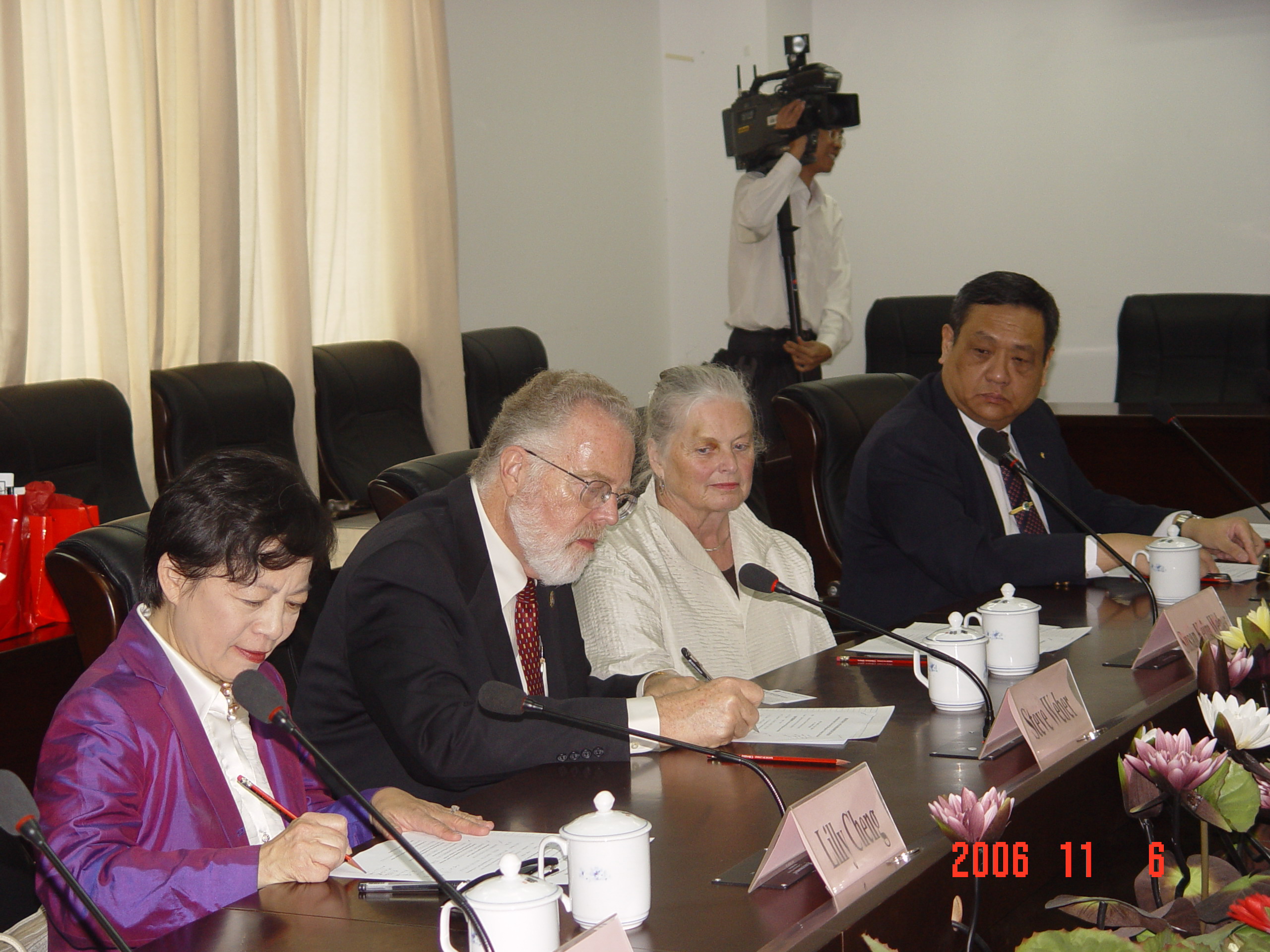 11月6日,中国泉州师院——美国圣迭戈州立大学友好访问座谈会在东海校区行政楼第二会议室召开。美国圣迭戈州立大学校长韦伯及夫人,泉州市人大常委会副主任洪辉煌、泉州市副市长潘燕燕、校领导陈笃彬、赖新民、王柄庆、林华东、泉州市教育局局长郑文伟等参加了座谈会。潘燕燕在会上发表了热情洋溢的讲话。座谈会由林华东副院长主持。