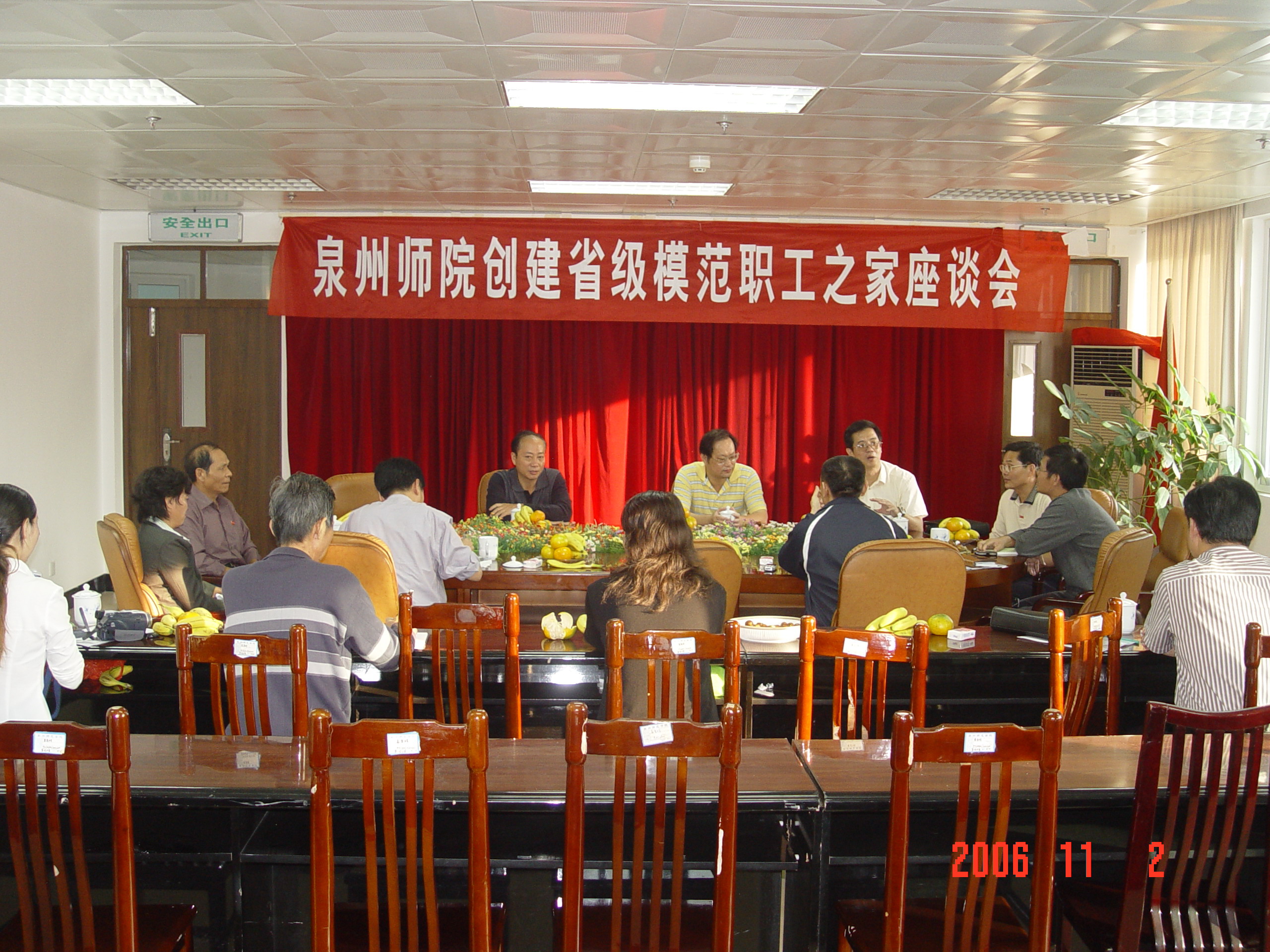 112日下午,我校创建省级模范职工之家验收反馈会在东海校区行政楼大会议室召开。以福建省教科文卫体工会工作委员会主任方清为组长的省验收组全体成员,校领导洪辉煌,陈笃彬、张舟、王炳庆、林华东,市教育局工会领导刘一聪、蔡席鹏、马清华以及校“建家领导组”全体成员和校各工会分会主席、直属工会小组组长参加了反馈会。反馈会由方清主持。