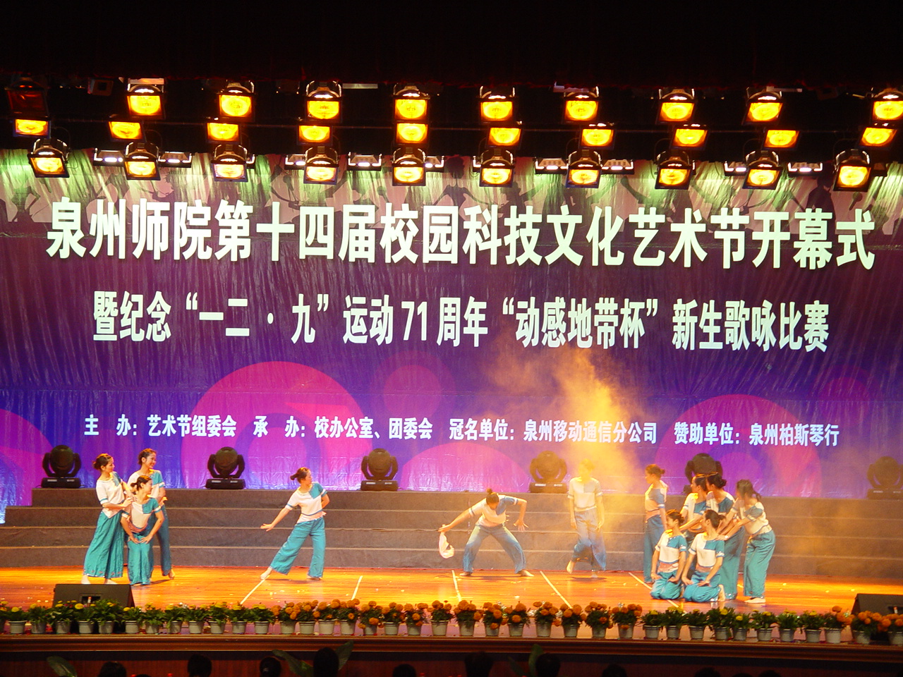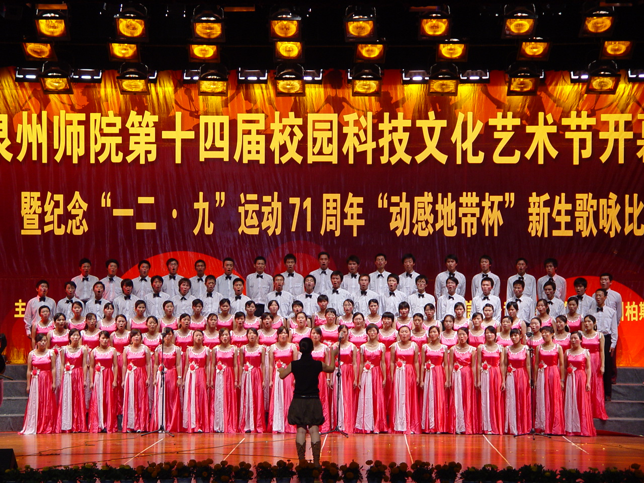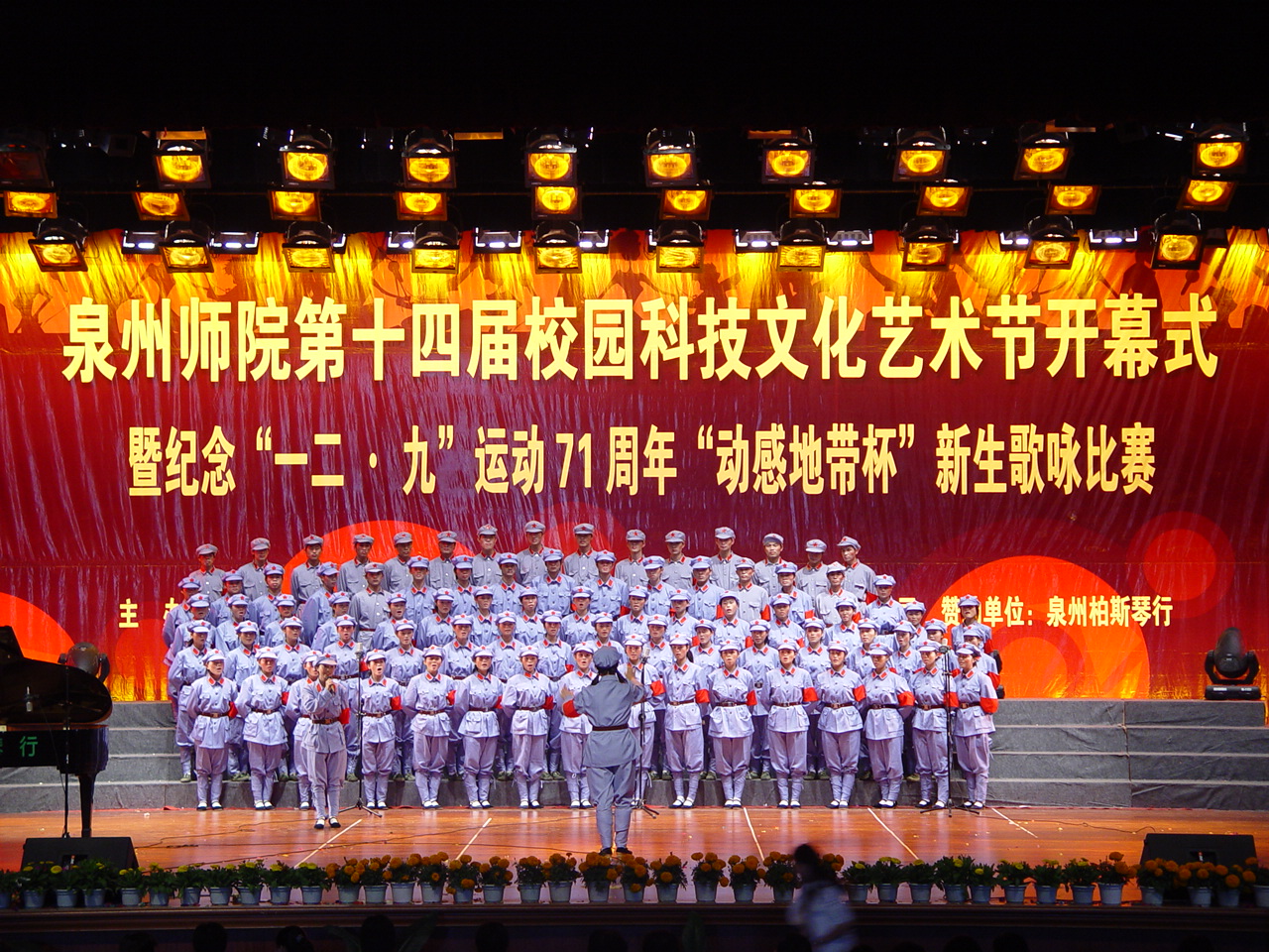随后,由体育学院的一首《中国,中国,鲜红的太阳永不落》拉开了此次新生歌咏比赛的序幕。来自东海、崇福、诗山三个校区十支新生参赛队进行了声情并茂的演出,充分展示了我校新生的歌唱水平和蓬勃向上的精神风貌。据悉,人文学院、资环学院获得本届新生歌咏比赛的一等奖;外国语学院、化生学院、高职学院获二等奖;理工学院、陈守仁工商信息学院、体育学院、教育科学学院获三等奖,艺术学院获表演奖。