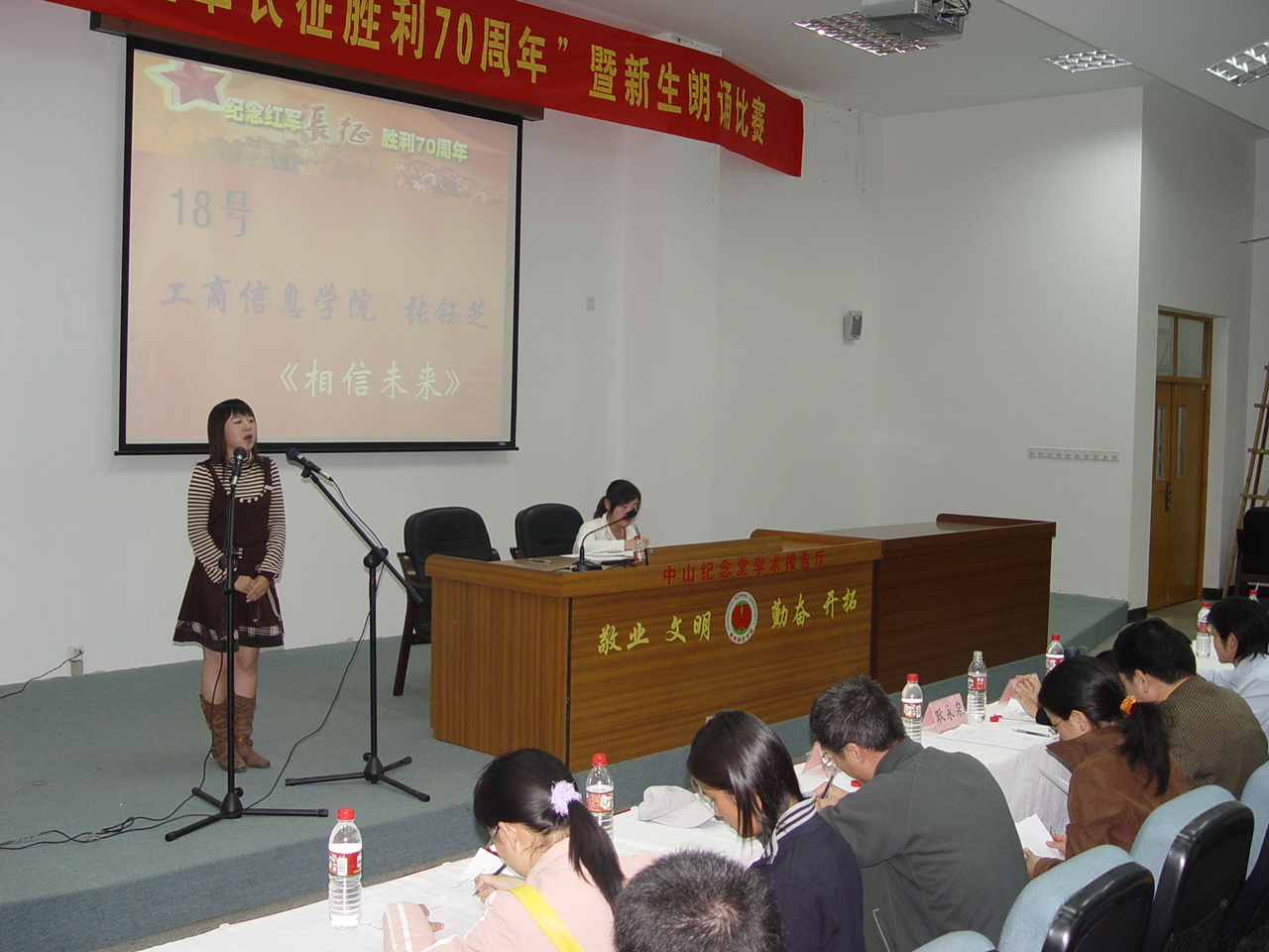 12月6日,从孙中山第三学术报告厅传来了阵阵激昂的音乐,由人文学院承办的校“纪念红军长征胜利70周年”暨新生朗诵比赛在这里举行。