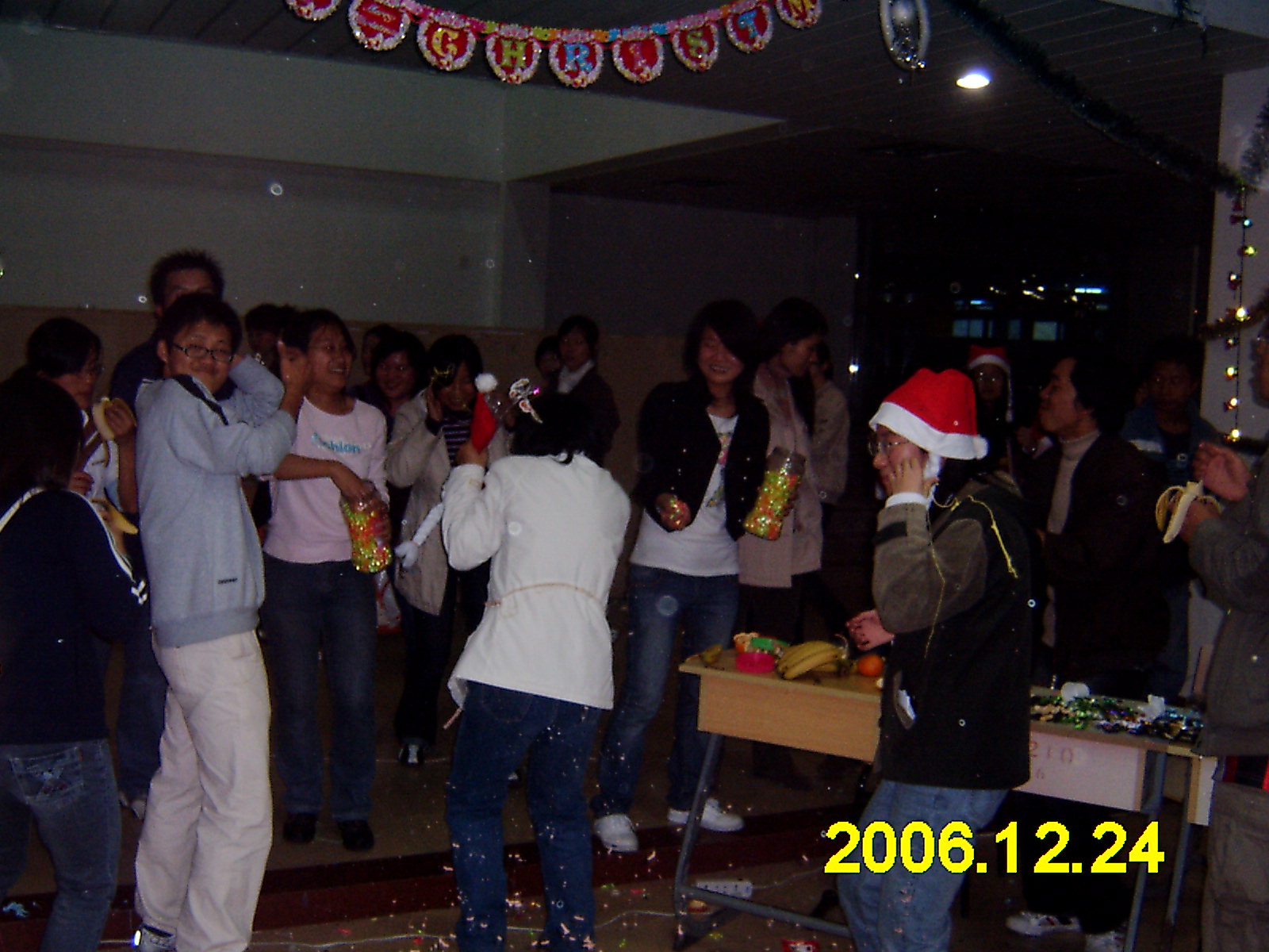 1224日晚,陈守仁工商信息学院部分师生在文科楼B幢大厅和外教一起度过了一个原汁原味的平安夜。