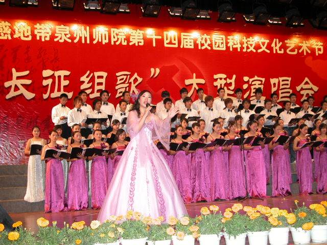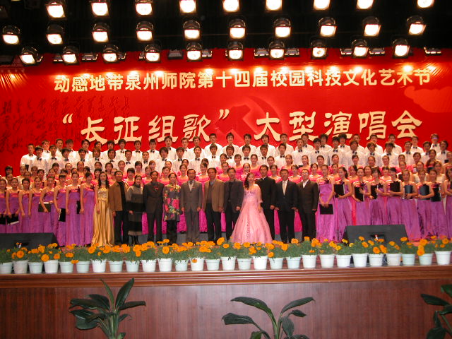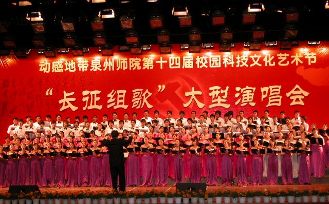 12月29日晚,由艺术节组委会主办,校宣传部、团委会和艺术学院承办的动感地带泉州师院第十四届校园科技文化艺术节“长征组歌”大型演唱会在东海校区陈祖昌大礼堂成功举办。校党委副书记张舟出席了演唱会并致辞。