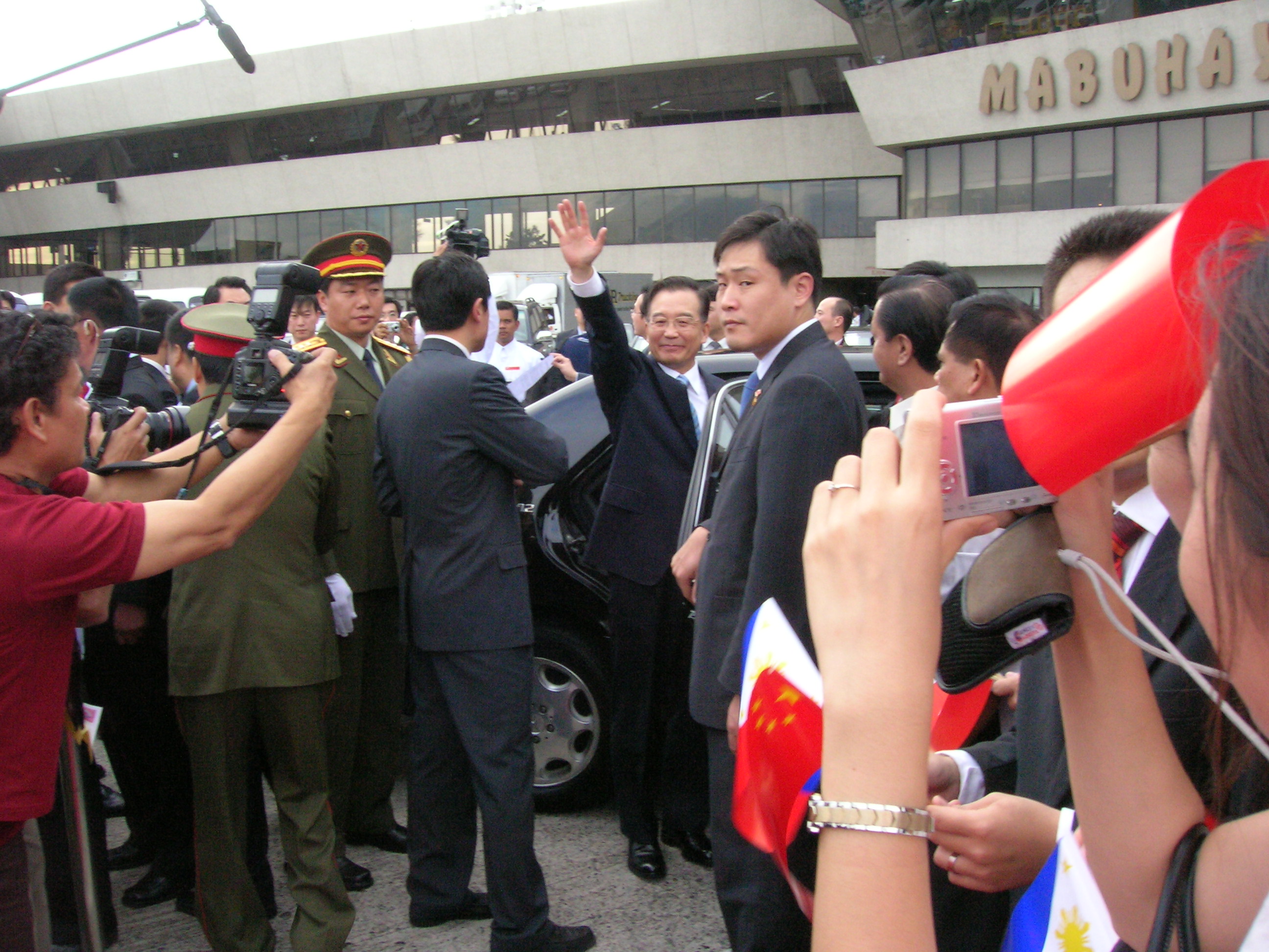 应菲律宾总统阿罗约的邀请,中国国务院总理温家宝13日乘专机抵达菲律宾中部城市宿务,出席第十次中国与东盟领导人会议、第十次东盟与中日韩领导人会议和第二届东亚峰会,并主持召开第七次中日韩领导人会议。15日下午,温总理抵达菲律宾首都马尼拉对菲律宾进行正式访问,我校在菲志愿者代表在带队教师的带领下到马尼拉国际机场热烈欢迎温总理。(林国宏)
