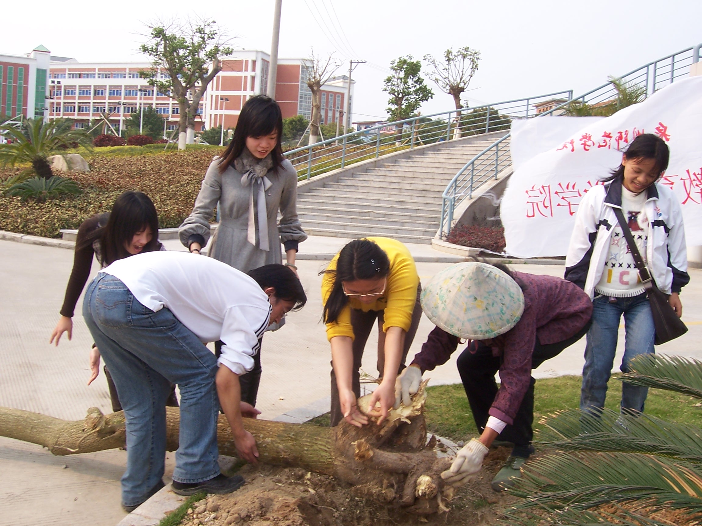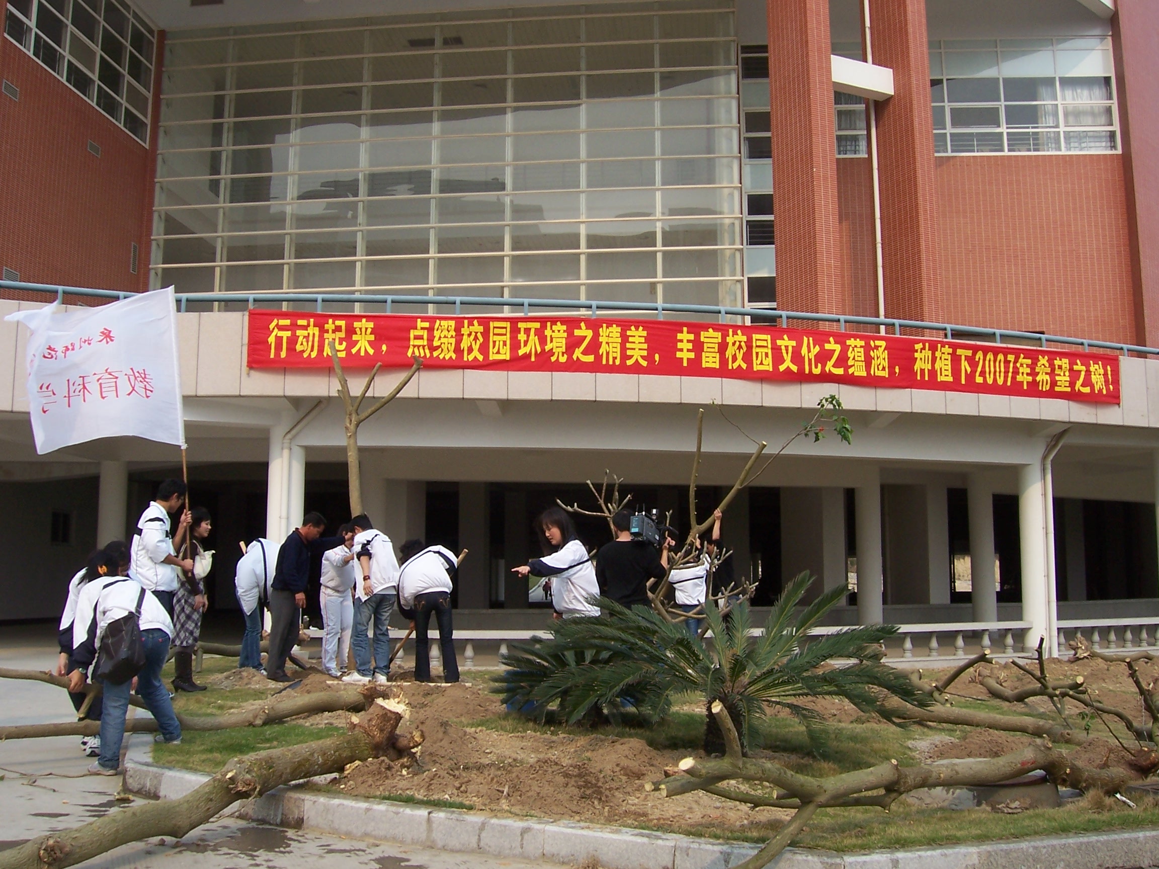 阳春三月,又是一个植树的好时节。3月15日下午,学生处组织人文学院和教育科学学院学生在校园内钟楼、陈祖昌大礼堂旁种下200多棵2007年希望之树。