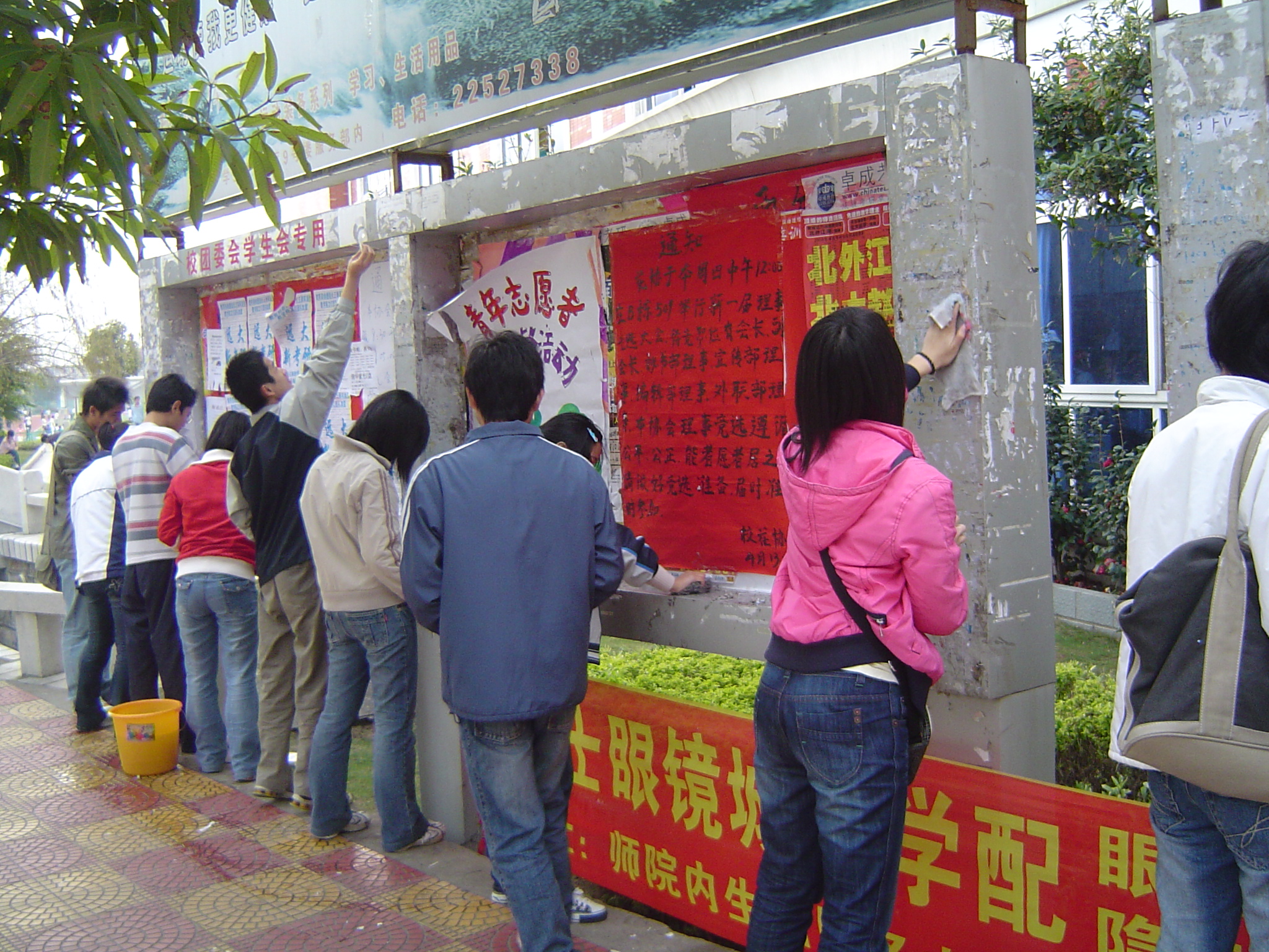 为了传承雷锋精神,彰显当代大学生的风貌,秉承无私奉献的宗旨,人文学院和理工学院青年志愿者协会分别于3月15日、16日在校内开展了以“学雷锋精神、树文明新风、建和谐校园”为主题的清除校园牛皮癣,清洗广告栏、石椅活动。