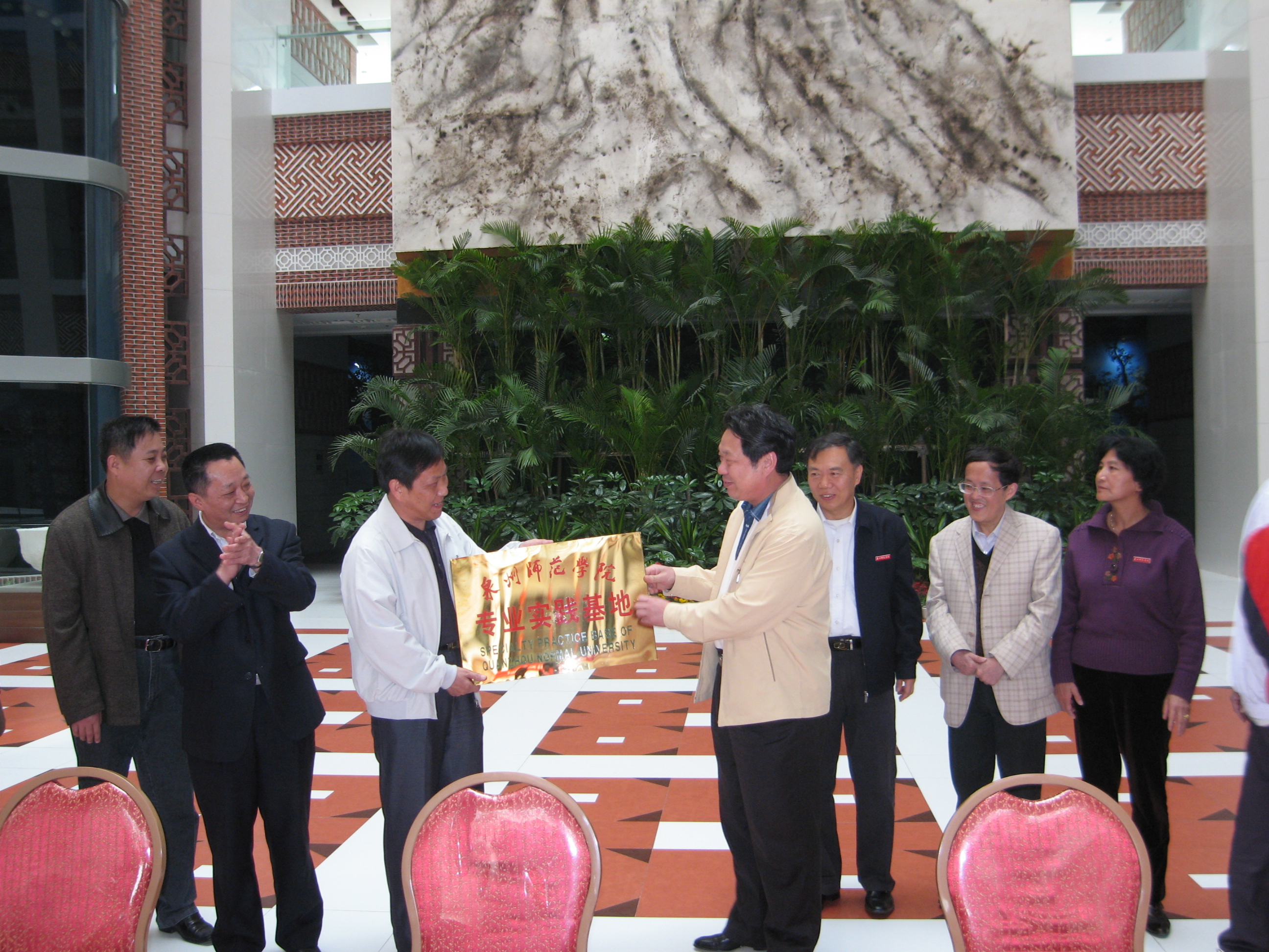 4月20日,泉州师范学院与中国闽台缘博物馆共建教学实践基地签约仪式在中国闽台缘博物馆举行。泉州市人大副主任、校党委书记洪辉煌,党委副书记、纪委书记赖新民,中共福建中国闽台缘博物馆党委书记谢清海,馆长杨彦杰,副馆长朱定波,我校教务处负责人以及人文学院负责人、师生代表共100人多参加签约仪式。赖新民和杨彦杰在仪式上致辞并签约。洪辉煌为实践基地授牌。