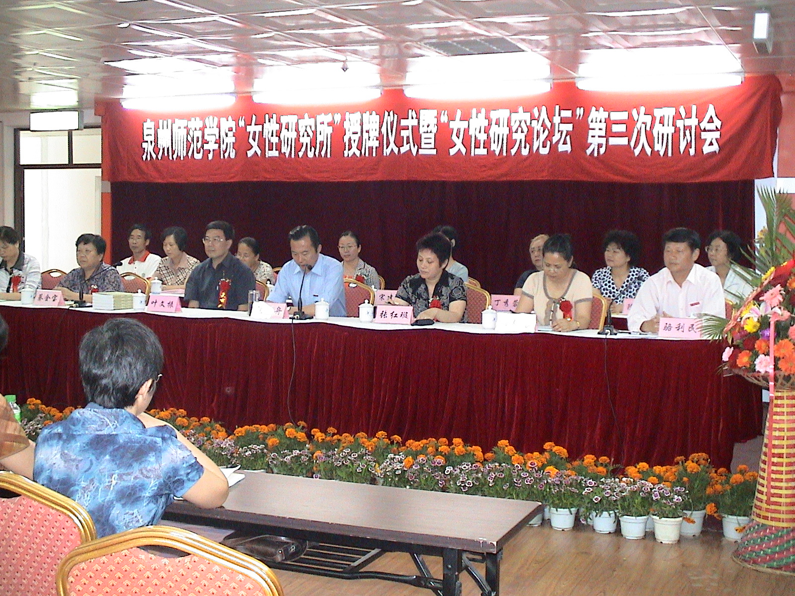 5月26日下午,我校“女性研究所”授牌仪式暨“女性研究论坛”第三次研讨会在行政楼二楼会议室隆重举行。省教科文卫体工会副主任张红璇、市妇联主席甘端蓉、市总工会副主席蔡金宝参加授牌仪式并致辞,厦门大学妇女委员会专程发来贺信,市教育工会、华侨大学女性研究中心等领导和专家及我校师生代表共70多名参加了会议。会上,厦门大学博导、福建女性研究中心主任、著名女性研究专家