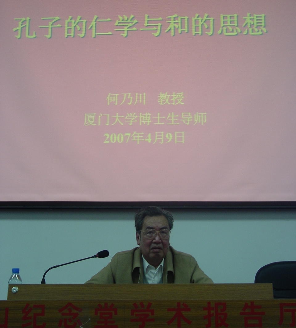 4月9日,厦门大学教授、厦门市易学研究会会长、泉州老子研究会会长何乃川在东海校区孙中山纪念堂学术报告厅为人文学院师生做了一场题为《孔子的“仁”学与“和”的思想》的讲座。