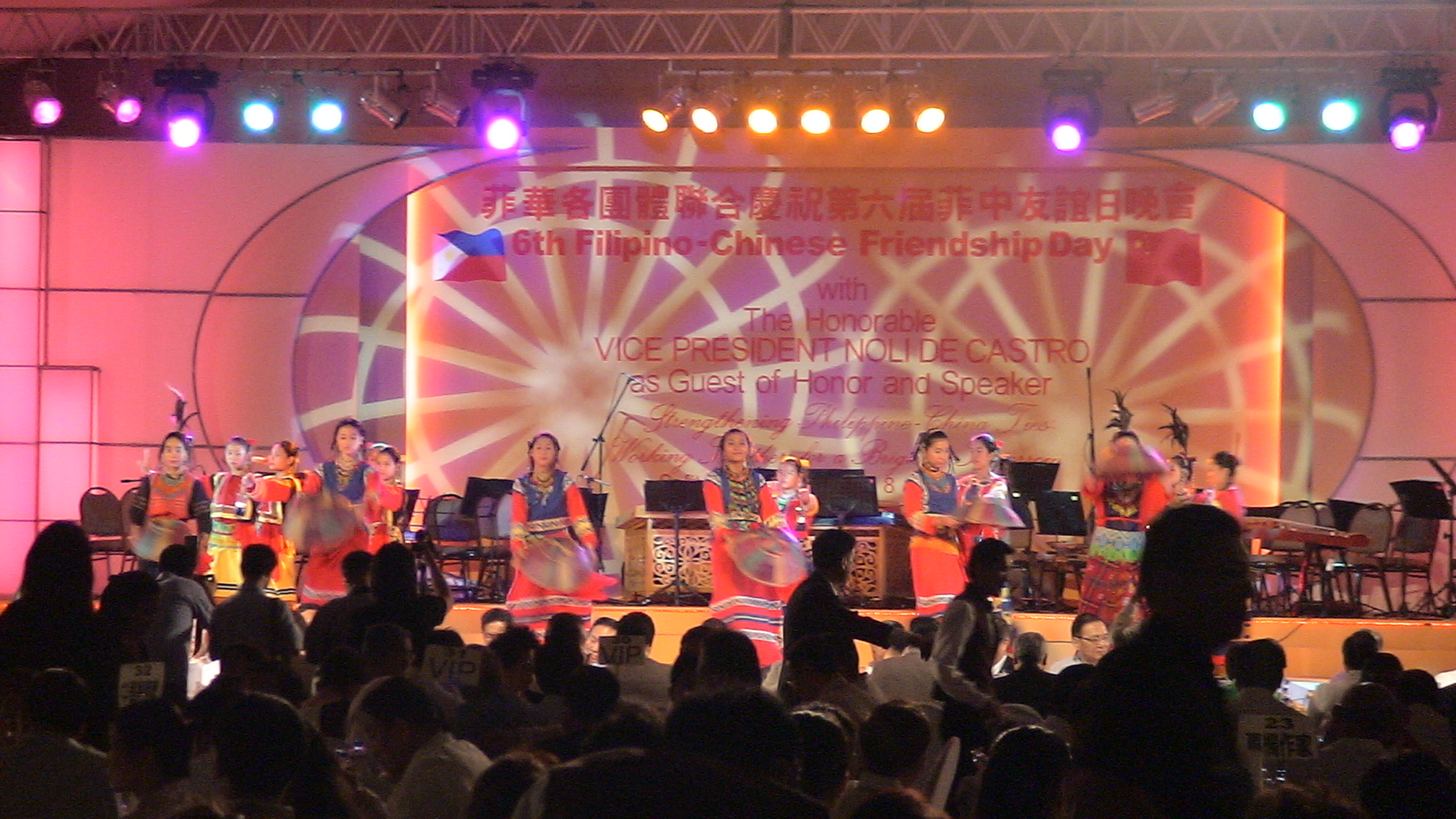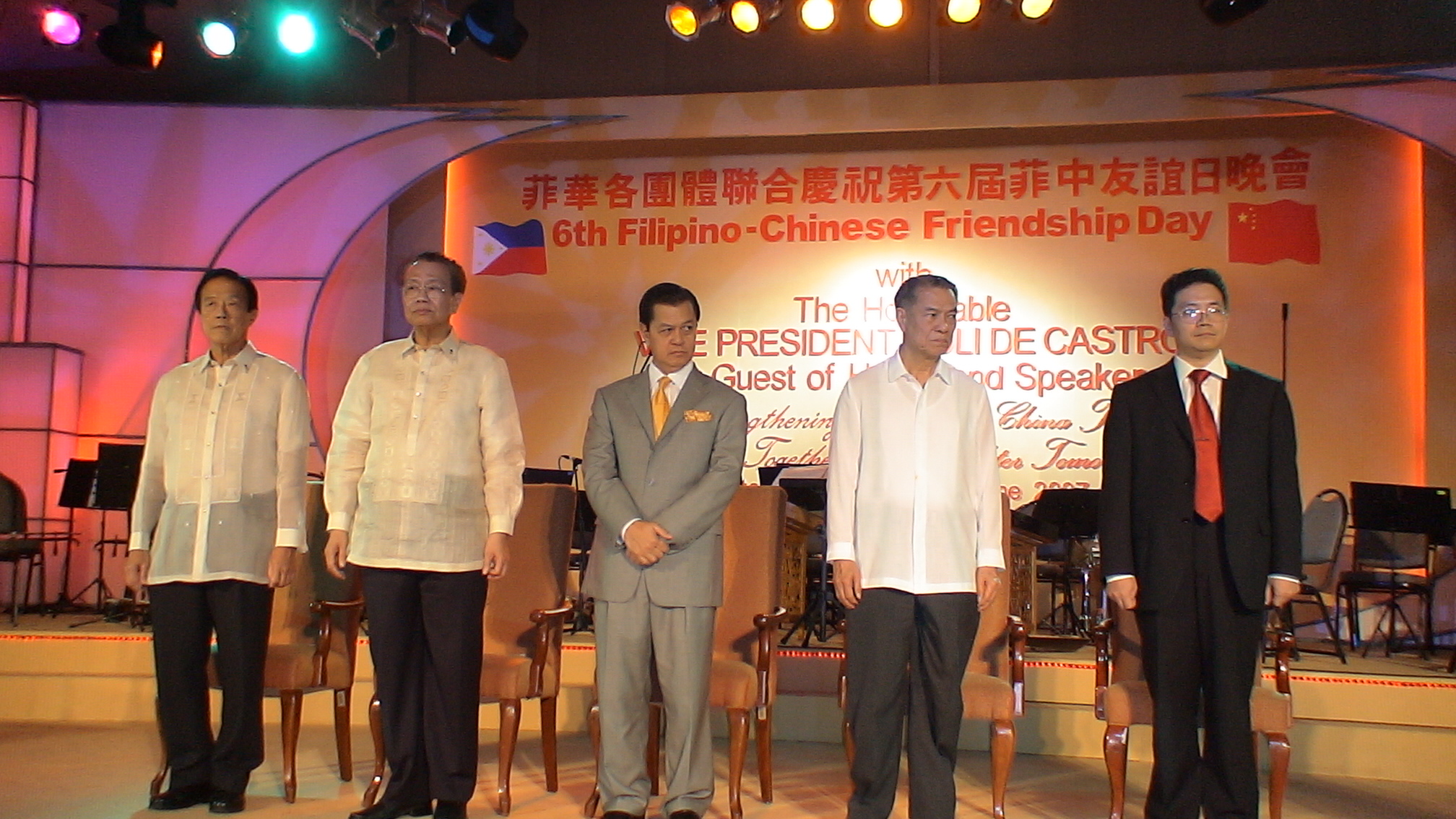 2007年6月8日晚,菲律宾外交部、中国驻菲律宾大使馆以及菲华各界联合会在马尼拉联合举办庆祝中菲建交32周年暨第六个中菲友谊日文艺晚会。菲律宾共和国副总统诺里黎加斯道、中国驻菲使馆临时代办邓锡军、菲华商联总会永远名誉理事长陈永栽博士、菲华商联总会理事长陈本显出席并发表讲话。菲律宾外交部官员及菲华主要社团负责人应邀出席,1000多名华侨华人兴致勃勃地观看了文艺演出。