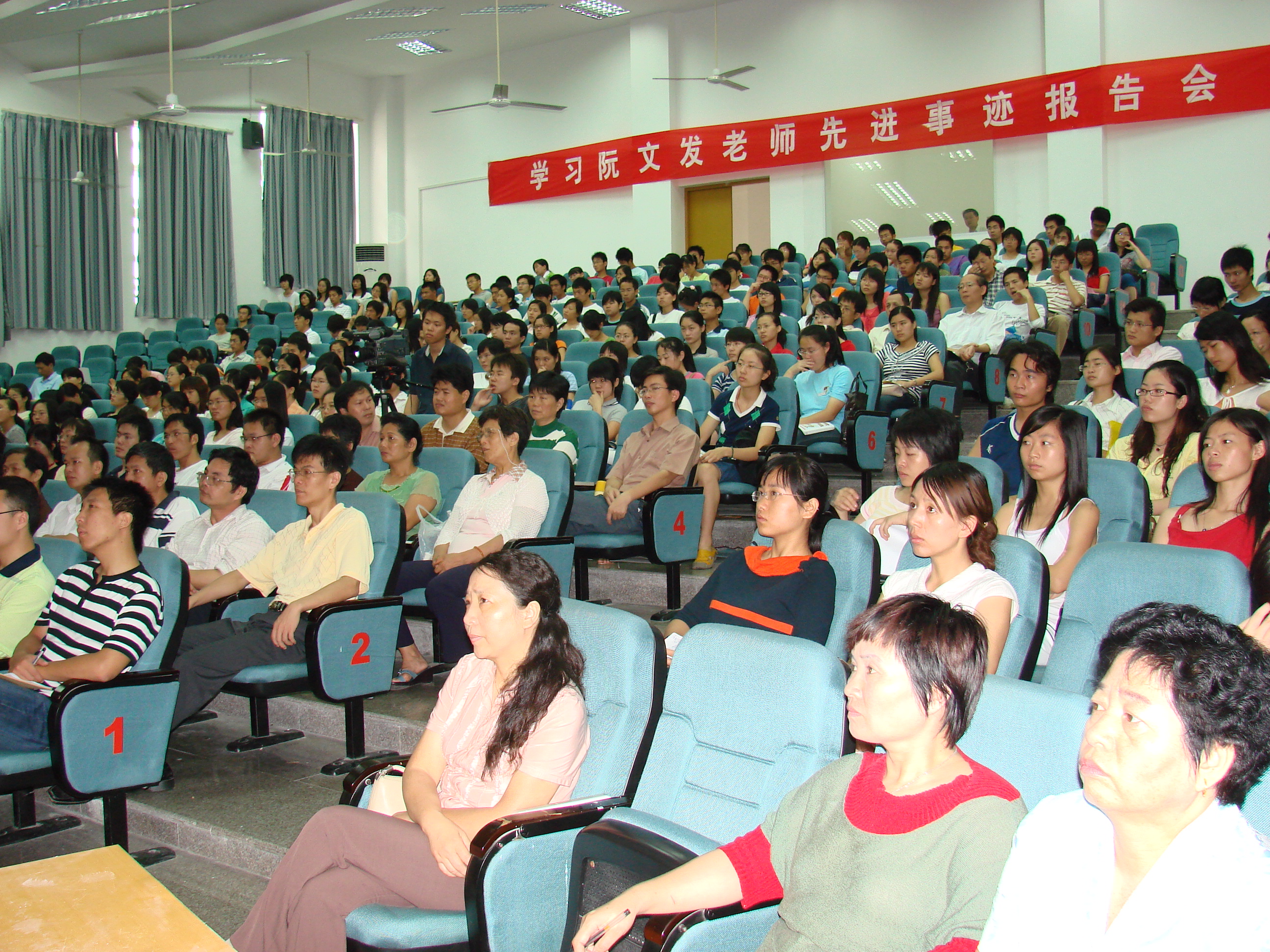 6月12日上午,阮文发老师先进事迹报告会在我校中山礼堂第二学术报告厅隆重举行。报告会由副院长王炳庆主持。校中层以上干部及师生代表300多人参加了报告会。