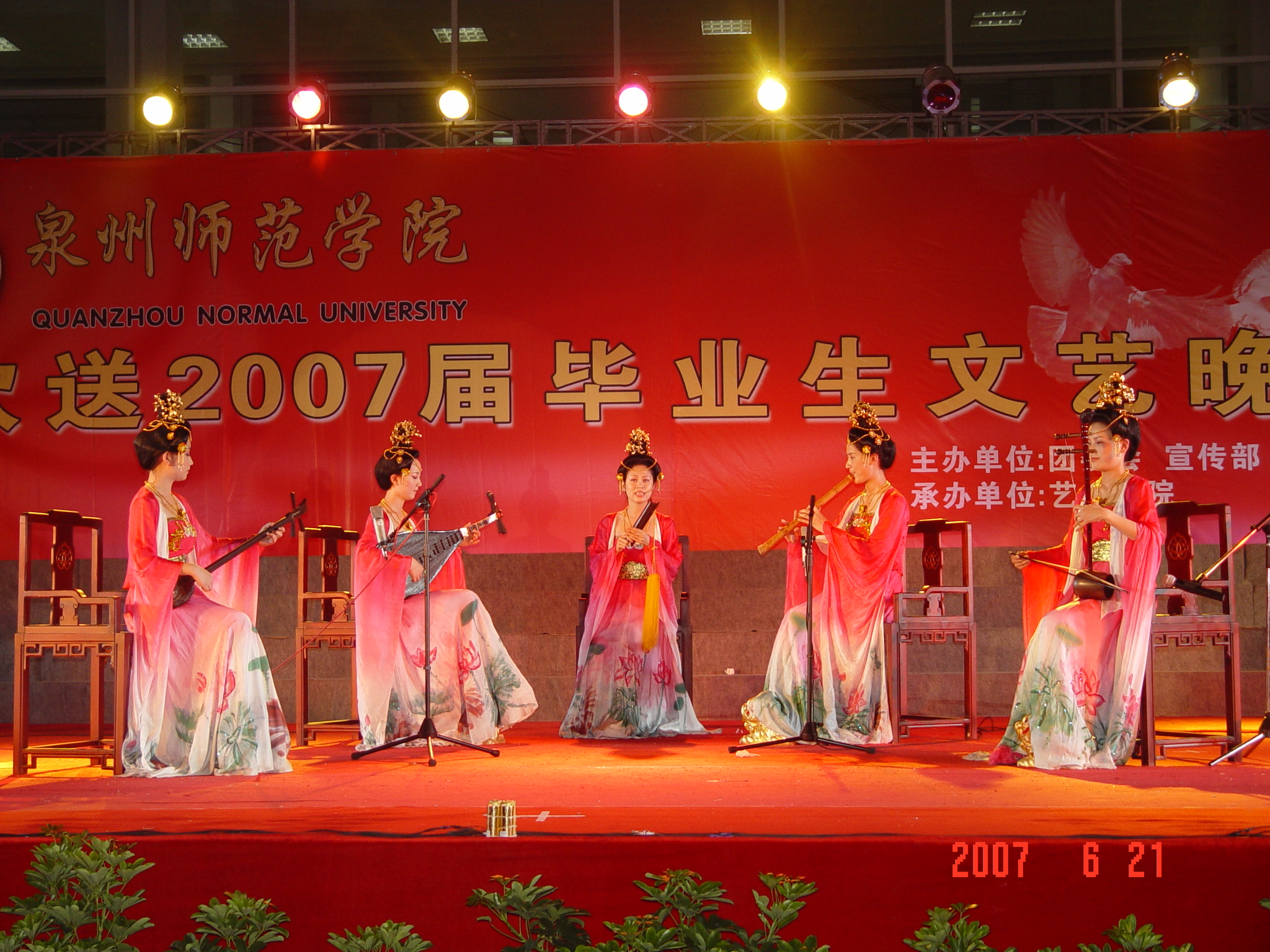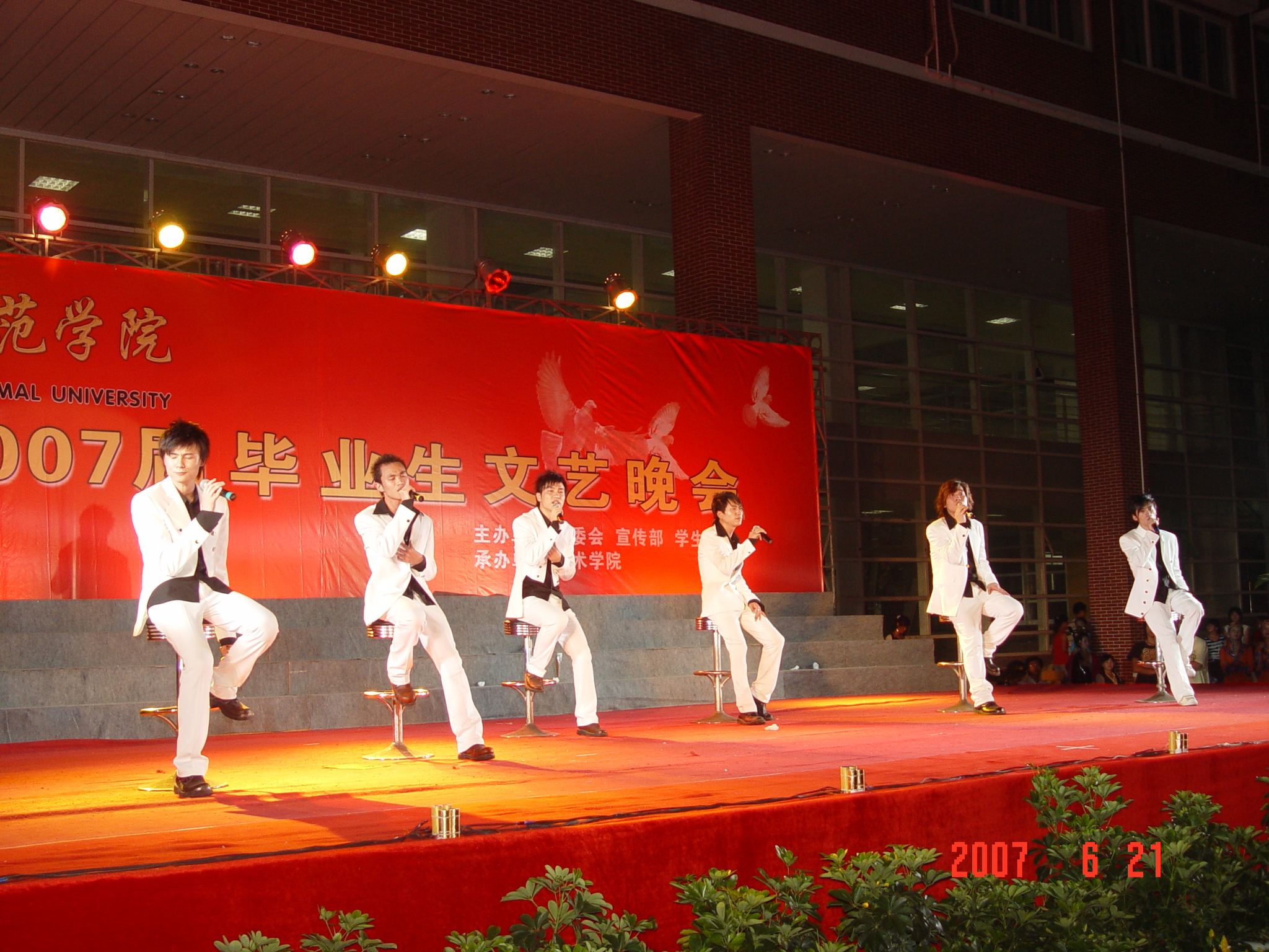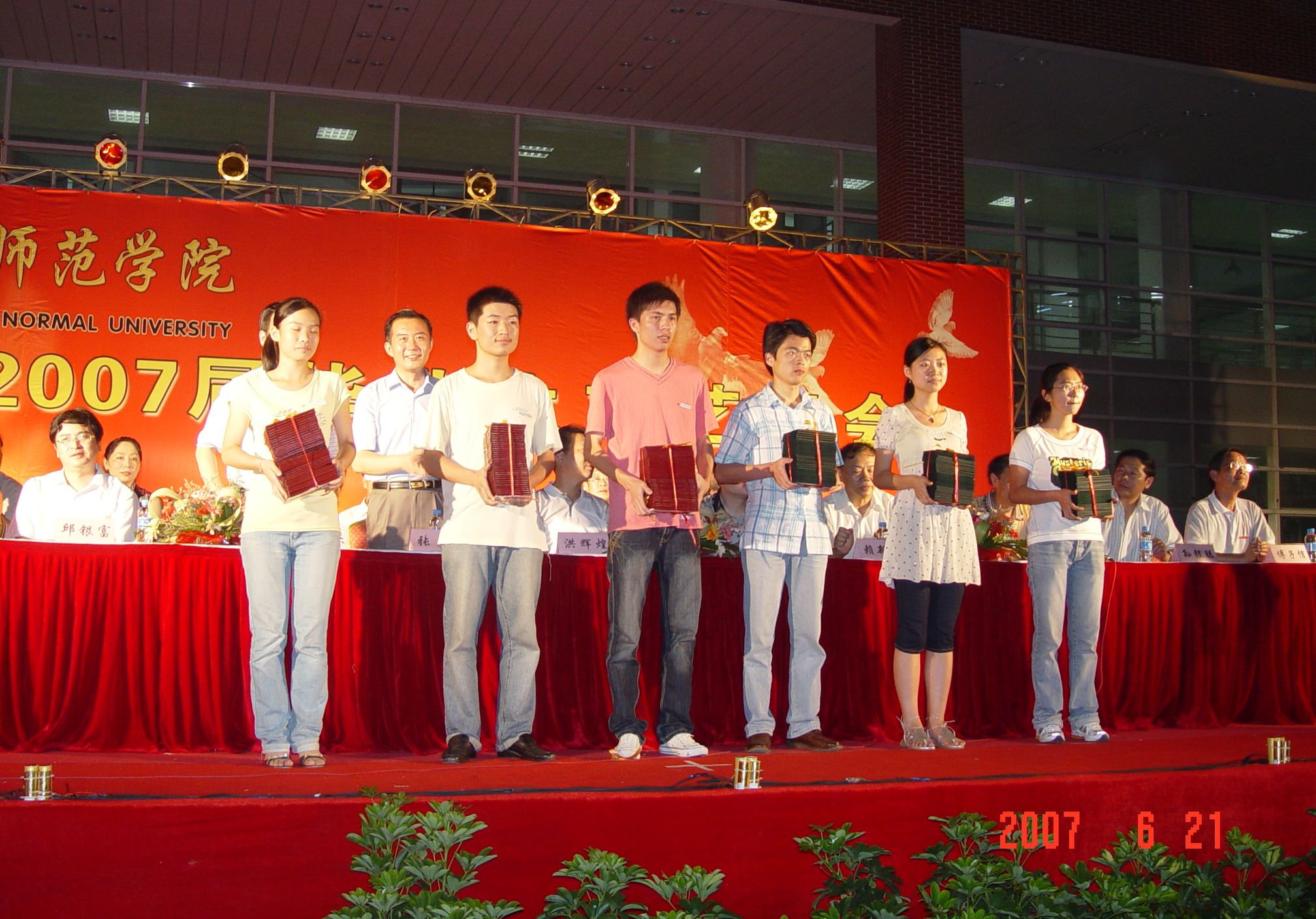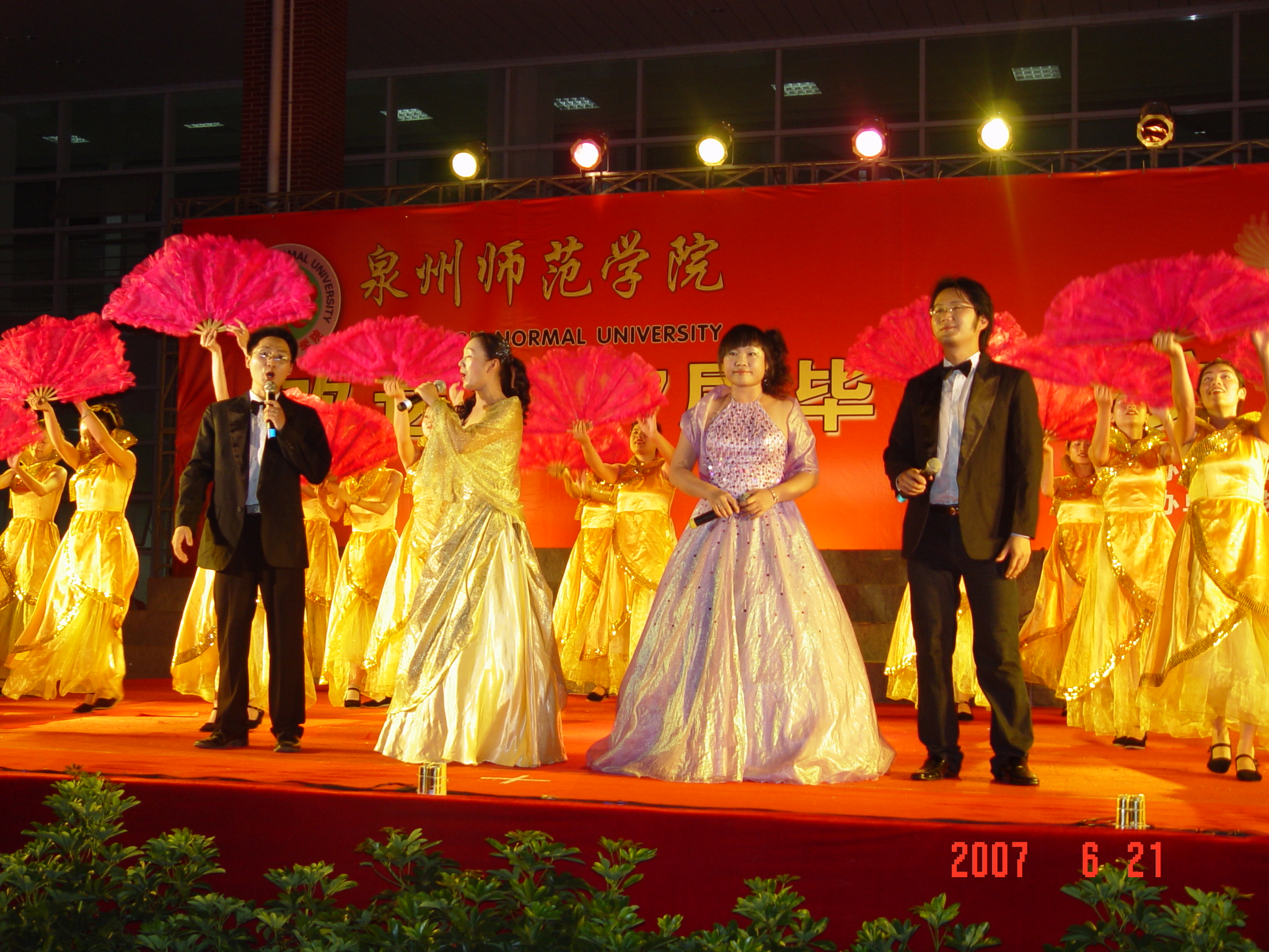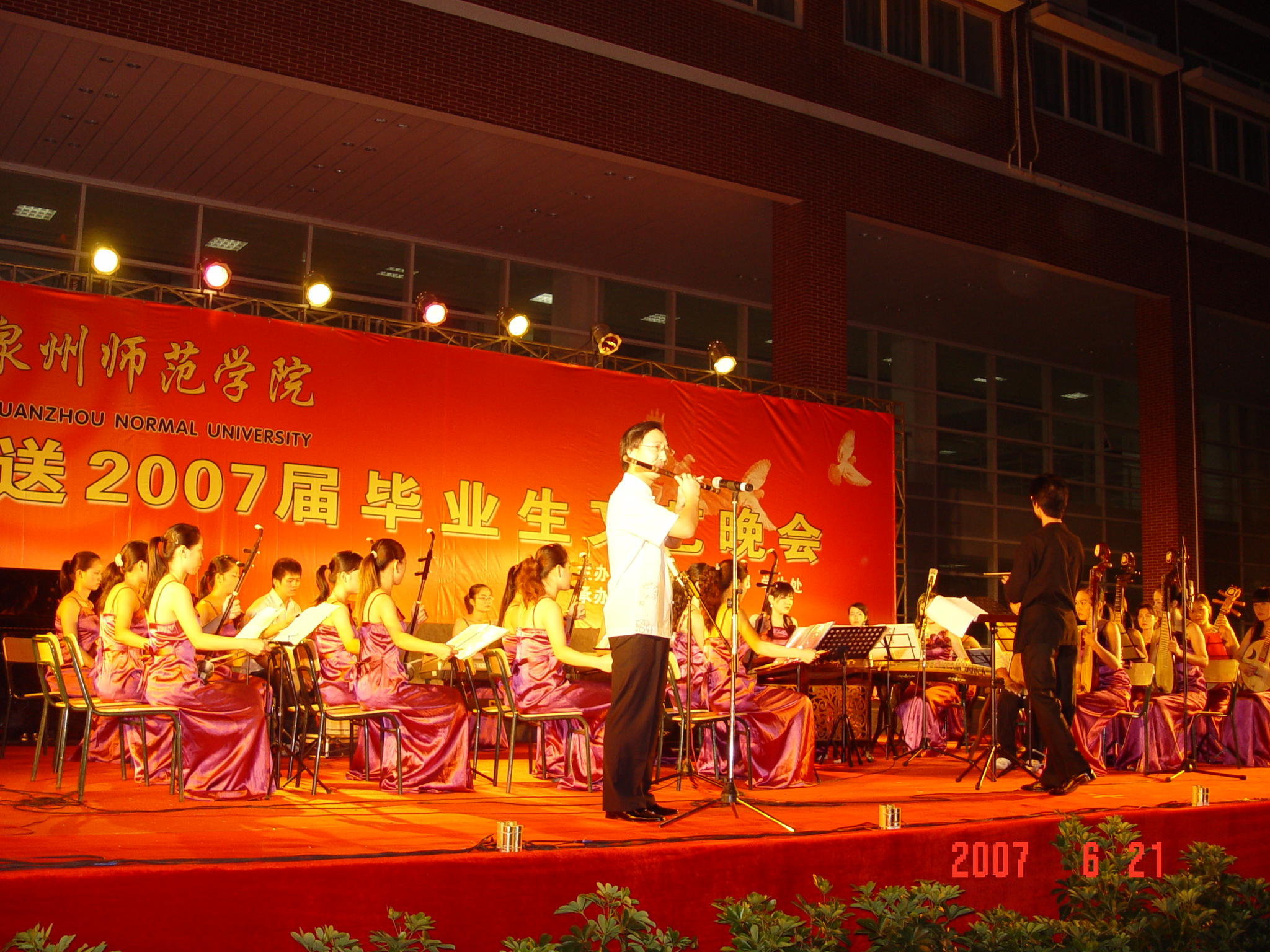 6月21日,我校2007届毕业典礼暨欢送毕业生晚会在东海校区中山广场举行。校领导洪辉煌、黄子杰、张舟、赖新民、王炳庆、林华东与会,中共泉州市委教育工委会副书记邱银富,泉州市教育局副局长孙银聪出席了晚会。毕业典礼由林华东主持。