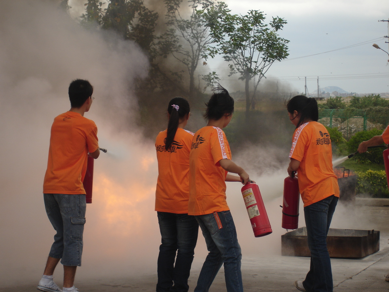 为促进我校“平安校园”的创建工作跨越上更高的层次,使我校全体师生员工,特别是新入学的三千多名新生树立起强烈的安全意识、掌握基本的消防灭火、疏散技能,更为了党的十七大胜利召开营造安全稳定的社会氛围,9月22日上午,我校与泉州市消防支队在东海校区联合举行大型消防灭火、疏散演练。校党委副书记张舟,校党委副书记、纪委书记赖新民,泉州市综治办公室主任王育琪,市消防支队副参谋长韩明观看了演练,并作了指示。东海校区3200名新生和50位学生义务消防队员参加、观看了这次消防演练。现场观看、受教育的还有2000多名其他师生。