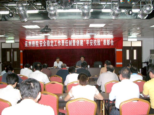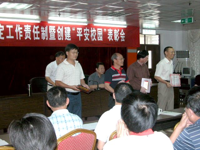 9月26日,我校安全稳定工作责任制暨创建“平安校园”表彰会在东海校区行政楼大会议室召开。校党委书记、综治委主任洪辉煌,党委副书记、综治委副主任赖新民以及机关各部门负责人、各二级学院党总支负责人和分团委负责人等参加会议。洪辉煌在会上作重要讲话,赖新民作上学年安全工作回顾和今年“平安校园”工作部署。会议表彰了2006-2007学年度创建平安校园先进集体与先进个人。会议由赖新民主持。