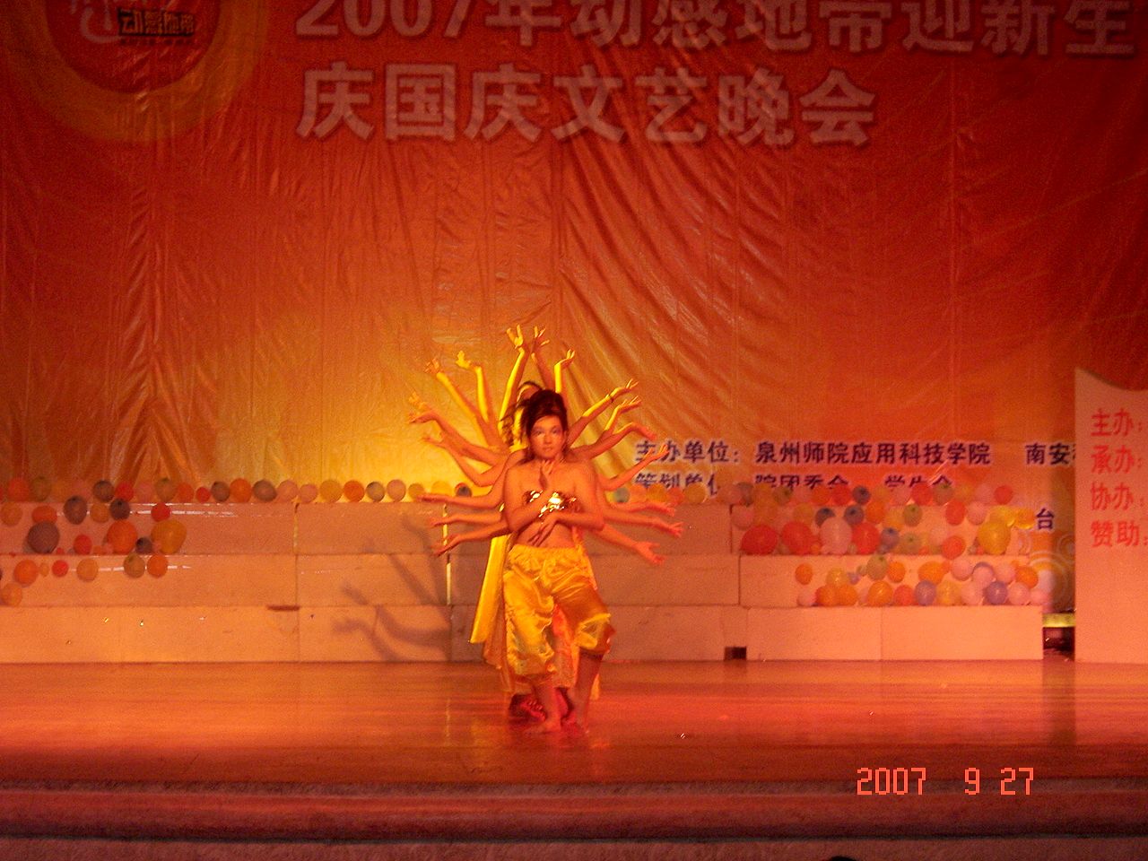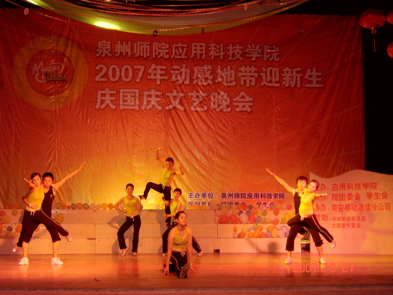 9月27日晚,应用科技学院在诗山校区俊秀大礼堂举行“迎新生 庆国庆”文艺晚会。该院党政负责人、在诗山校区军训教官、各科室负责人部分教职员工、2006级学生、2007级新生800多人观看了演出。