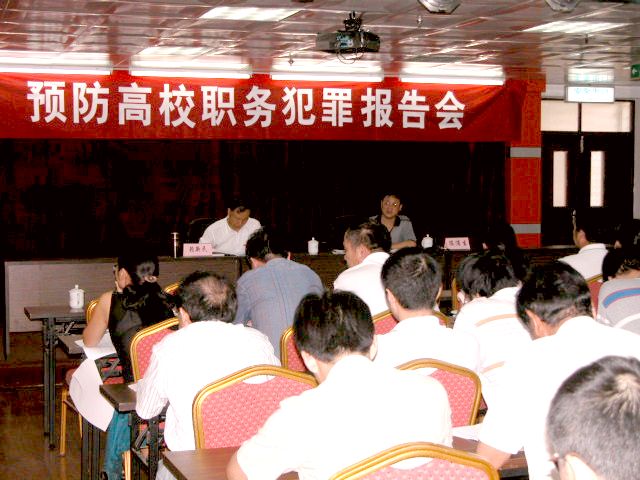 9月29日,省纪委一室主任陈浦生同志应邀莅校作《预防高校职务犯罪》专题报告。校领导黄子杰、赖新民、王炳庆,全校副科以上干部及相关部门工作人员参加报告会。报告会由赖新民主持。