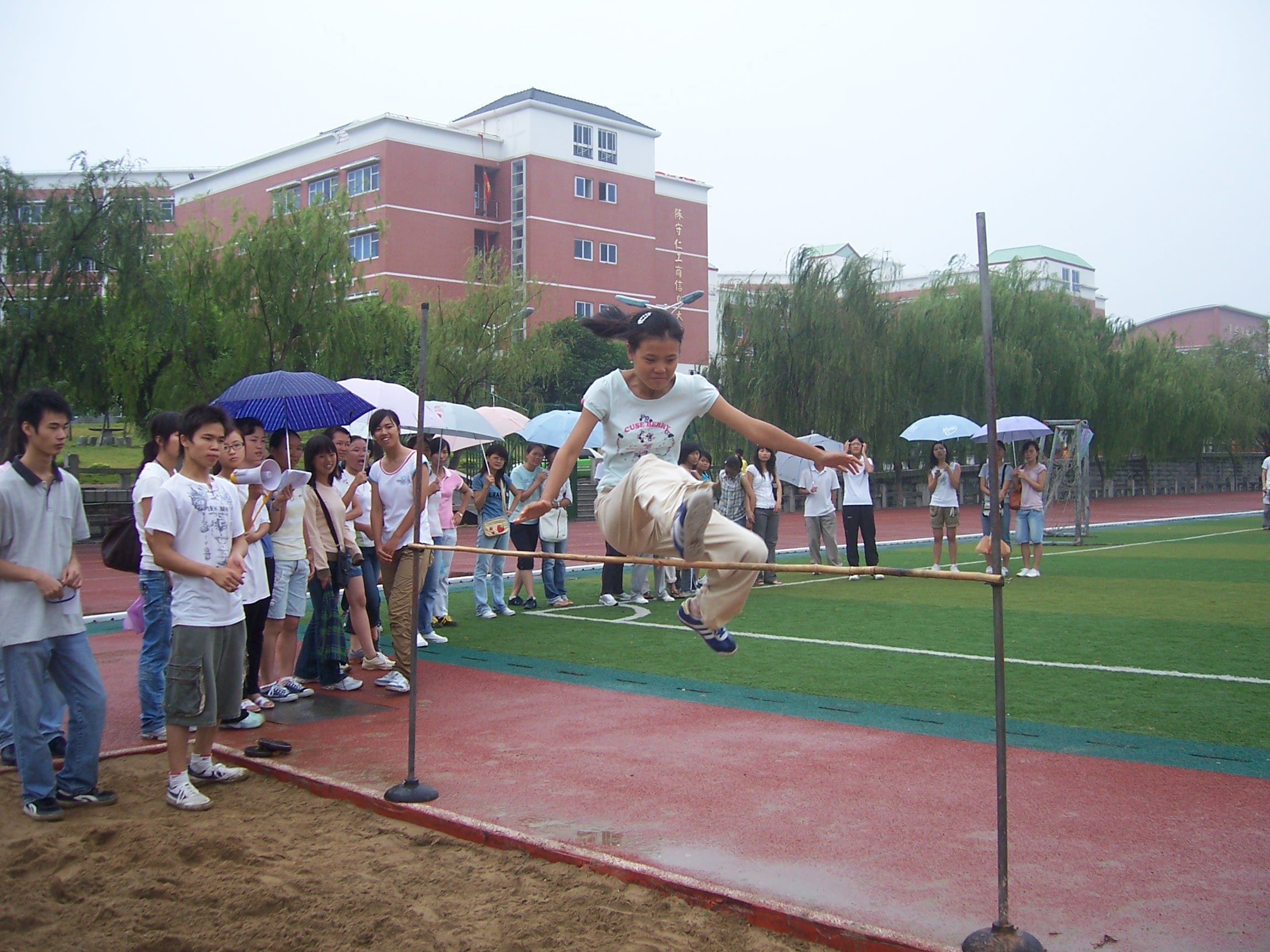 为在第25届校运会上争取更好的成绩,10月7日,教育科学学院在东海校区运动场举行运动员选拔赛。选拔赛主要有跳高、跳远、三级跳、铅球、实心球投准等项目。(教育科学学院)