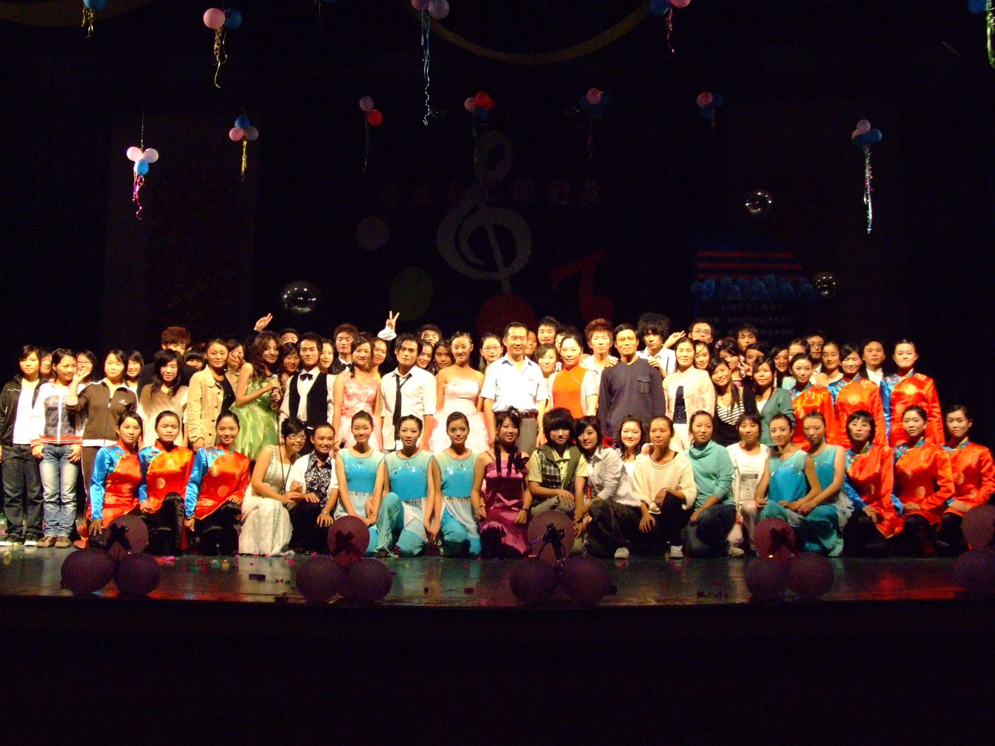 晚会现场气氛活跃,节目精彩纷呈。既有动感火辣的劲舞《The best》,也有感人至深的配乐诗朗诵《感恩的心》、别有风韵的京剧《沙家浜》和南音《直入花园》。清新的笛子独奏,幽雅的钢琴演奏等节目引得在座同学掌声不断。新生们用自己美妙的歌喉、动人的表演表达了对崭新大学生活的憧憬和希望。汇报演出在07音乐学全体同学的大合唱《和未来有约》中徐徐落下帷幕。