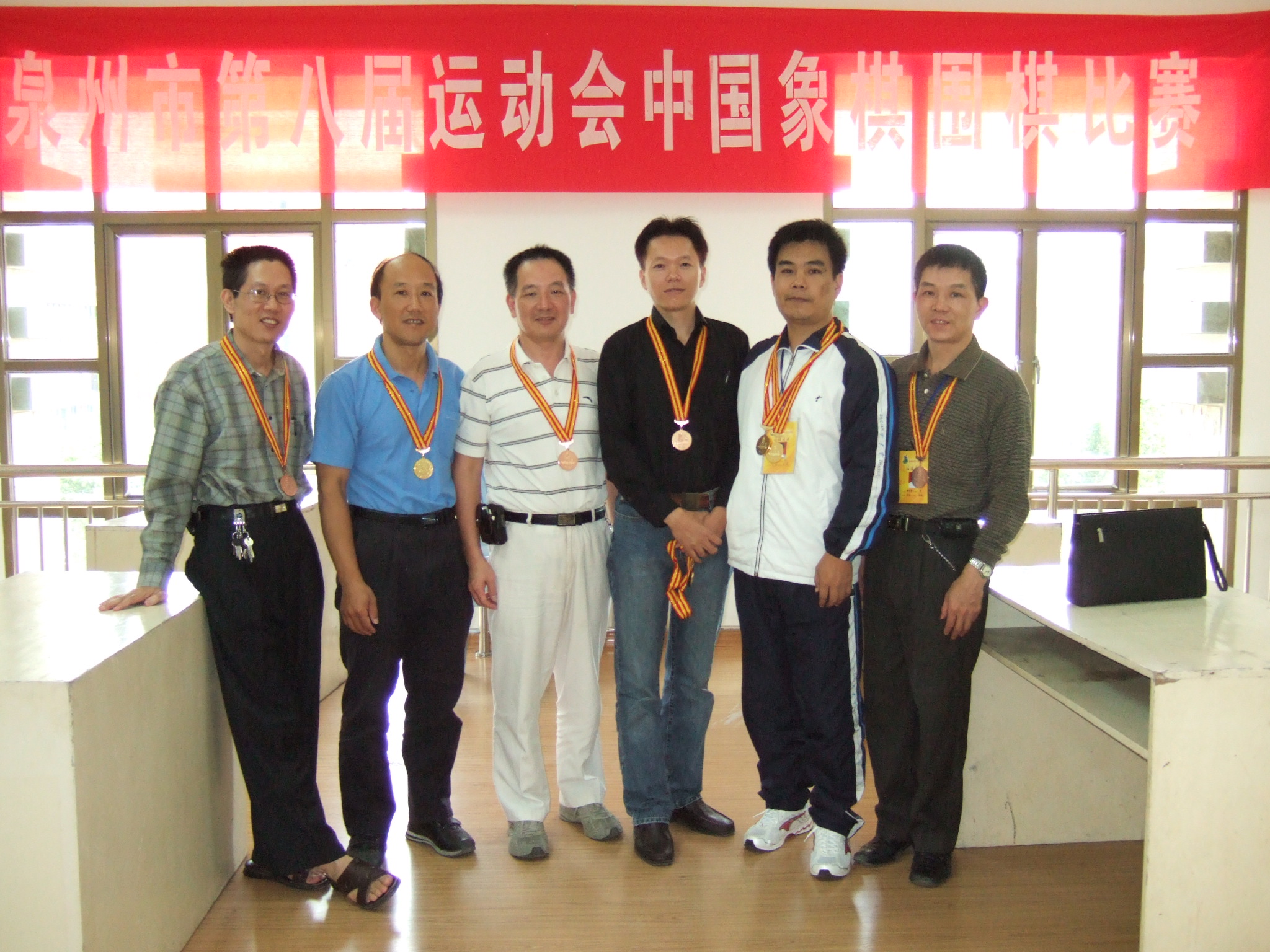 泉州第八届运动会传来喜讯,经过3天7轮的紧张角逐,市运会围棋比赛于10月30日结束,我校教师刘宗安(图中右二)勇夺冠军,其领衔的教育系统代表队获该项目团体第一名。