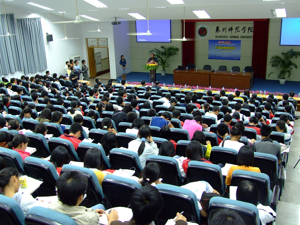 11月9日晚上,《南风窗》调研中国“关注我们身边的河流”暨晋江流域水资源现状调查报告在东海校区孙中山学术报告厅三楼召开。校党委张舟副书记、《南风窗》杂志社社长陈中、校相关部门负责人、泉州晚报社、福建电视台等新闻媒体以及300多名同学出席了此次报告会。