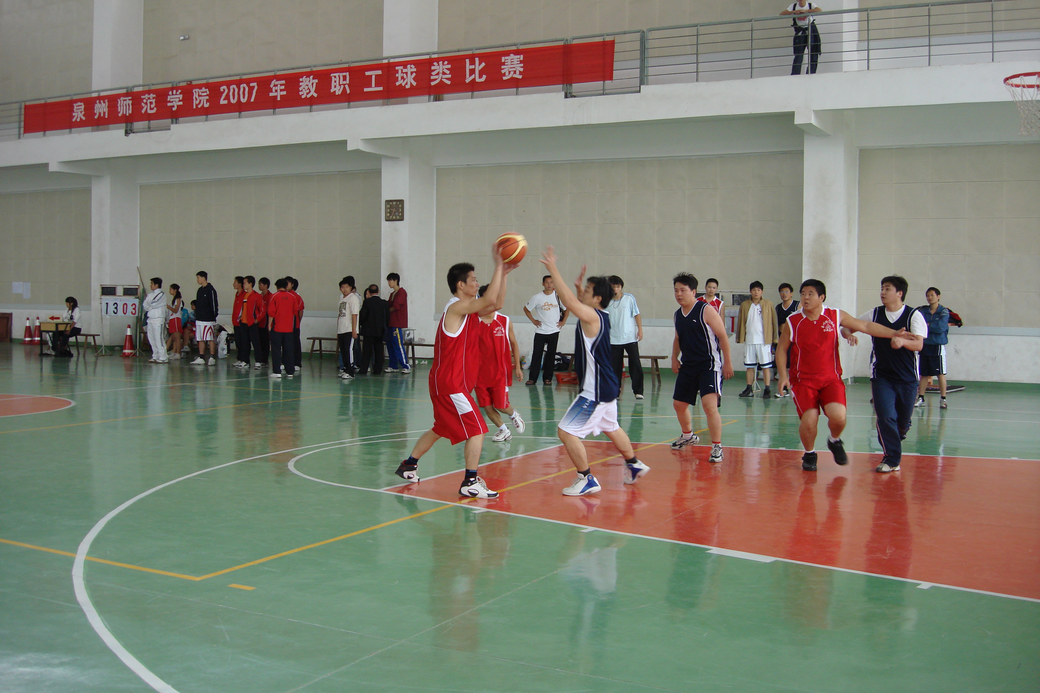 另悉,校工会于11月8-10日校运会期间组织了2007年度教职工三人篮球、乒乓球、羽毛球三项比赛。比赛得到全校教职工的热烈响应,校领导以及各二级学院、部门负责人均带头报名参加。据统计,共有27队135人报名参加三人篮球赛,66人次报名参加乒乓球赛,45人次报名参加羽毛球赛,参赛的总人数达290多人,占全校教职工总数的近四分之一。