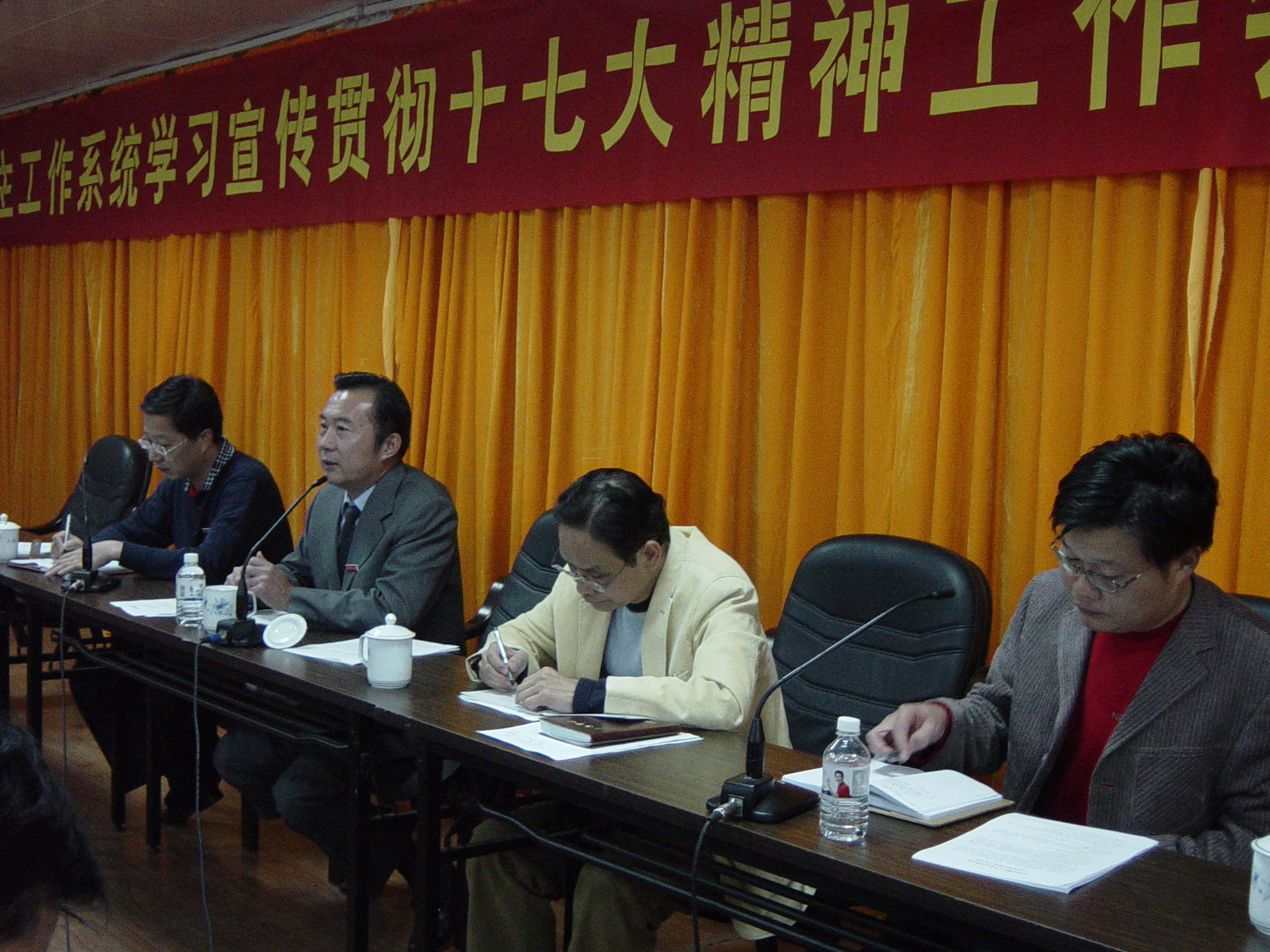 学生处负责人对学生工作系统学习宣传贯彻十七大精神工作作了布置,并在会上提出四点要求:一要组织全体学生认真学习十七大报告和党章,提高学生思想政治工作的针对性、主动性和实效性,使十七大精神进课堂、进教材、进学生头脑。二要根据我校学生工作的实际,坚持学以致用,用以促学,用十七大精神武装头脑,指导实践,推动工作。三学生工作干部要充分认识自己肩负的责任,带头学习好、领会好、掌握好、贯彻好十七大精神。四要大力宣传,善于发现典型,及时报道学生学习十七大精神的典型人物和先进事迹。