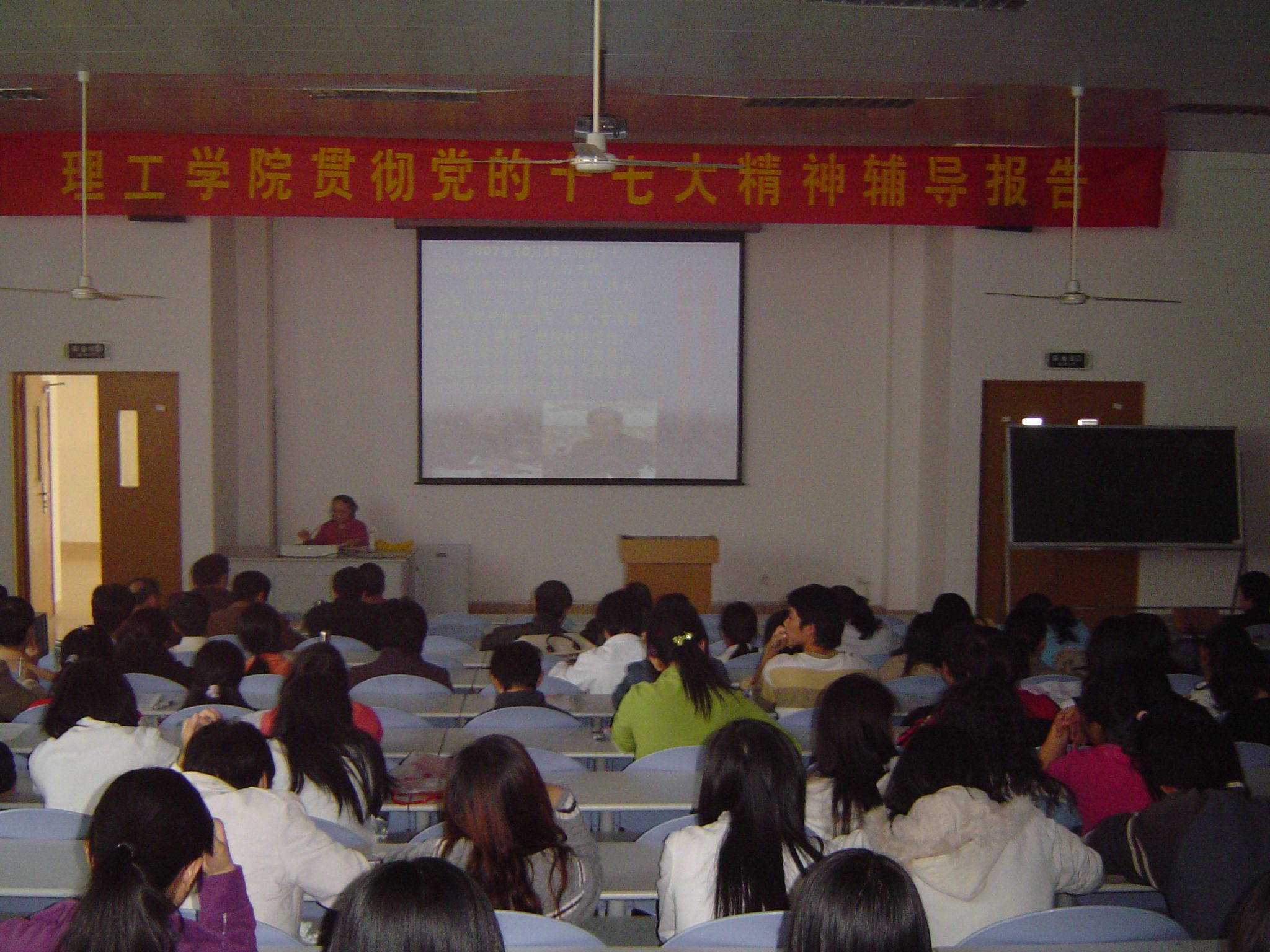 12月6日下午,理工学院在理工楼218室举行“学习贯彻党的十七大精神”辅导报告会。报告会由马列部钱立洁教授主讲。理工学院党政负责人、教职工和学生党员参加了报告会。