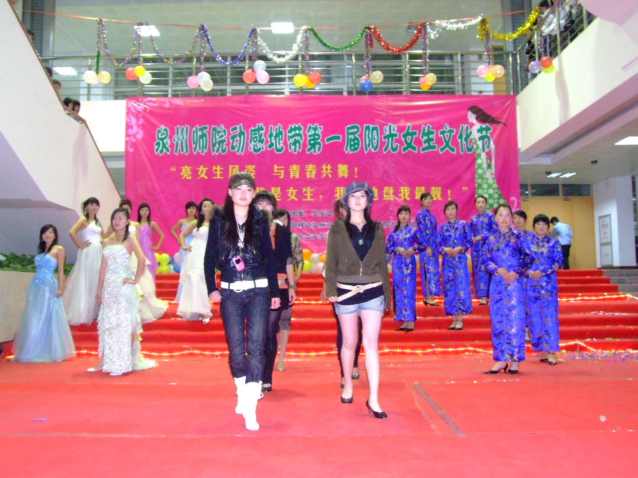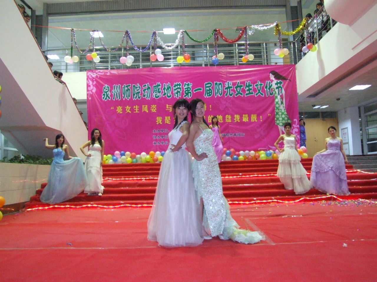 为庆祝“三八”国际妇女节,活跃校园文化气氛,丰富大学生课余生活,3月7日晚,由中国移动泉州分公司冠名,校团委会、学生会主办,校学生会女生部承办的“泉州师院动感地带第一届阳光女生节”活动在东海校区荣茂大厅举行。校团委会、学生会学生干部、二级学院学生会负责人共三百多名师生到场观看了演出。