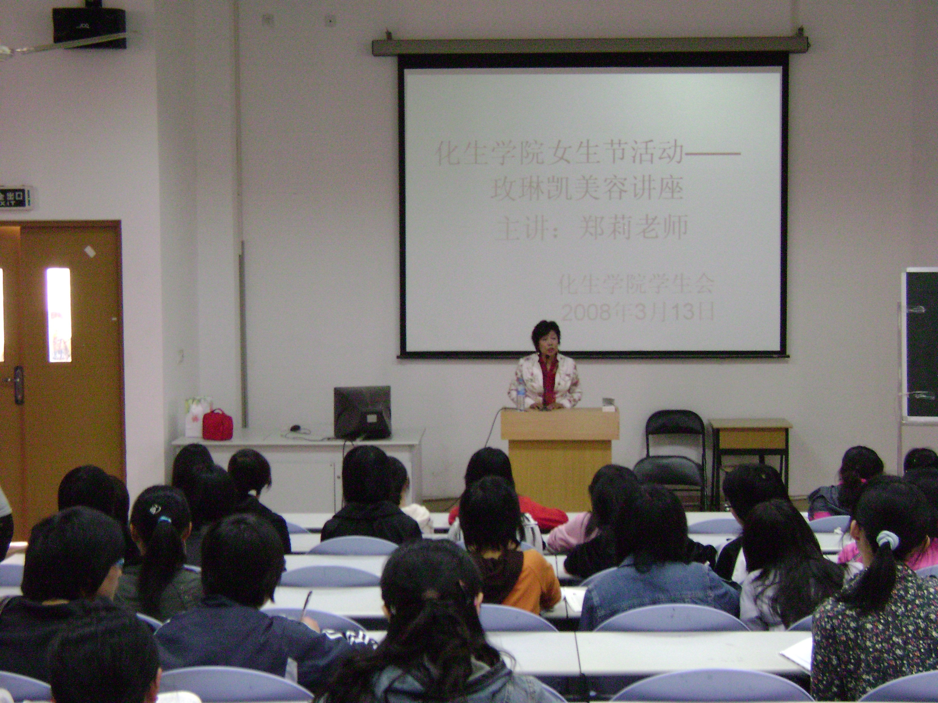 为进一步丰富女生们的业余生活,3月13日下午,化生学院在理工楼320室举办了美容知识讲座。讲座由玫琳凯(中国)化妆品有限公司的美容师郑莉主讲。现场座无虚席。