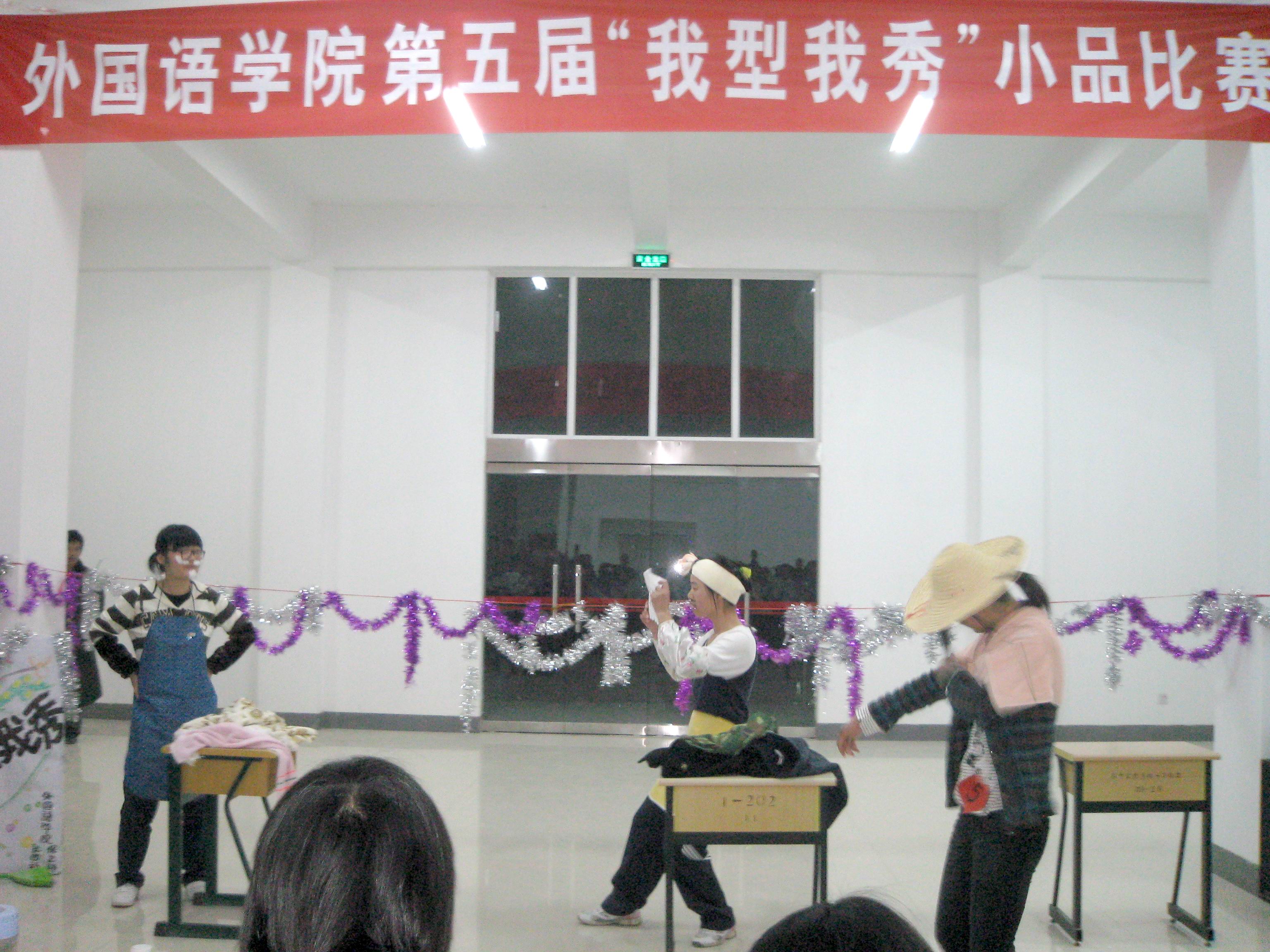 3月26日,外国语学院第五届“我型我秀”中英文小品比赛在俊秀文学院一楼大厅拉开帷幕。
