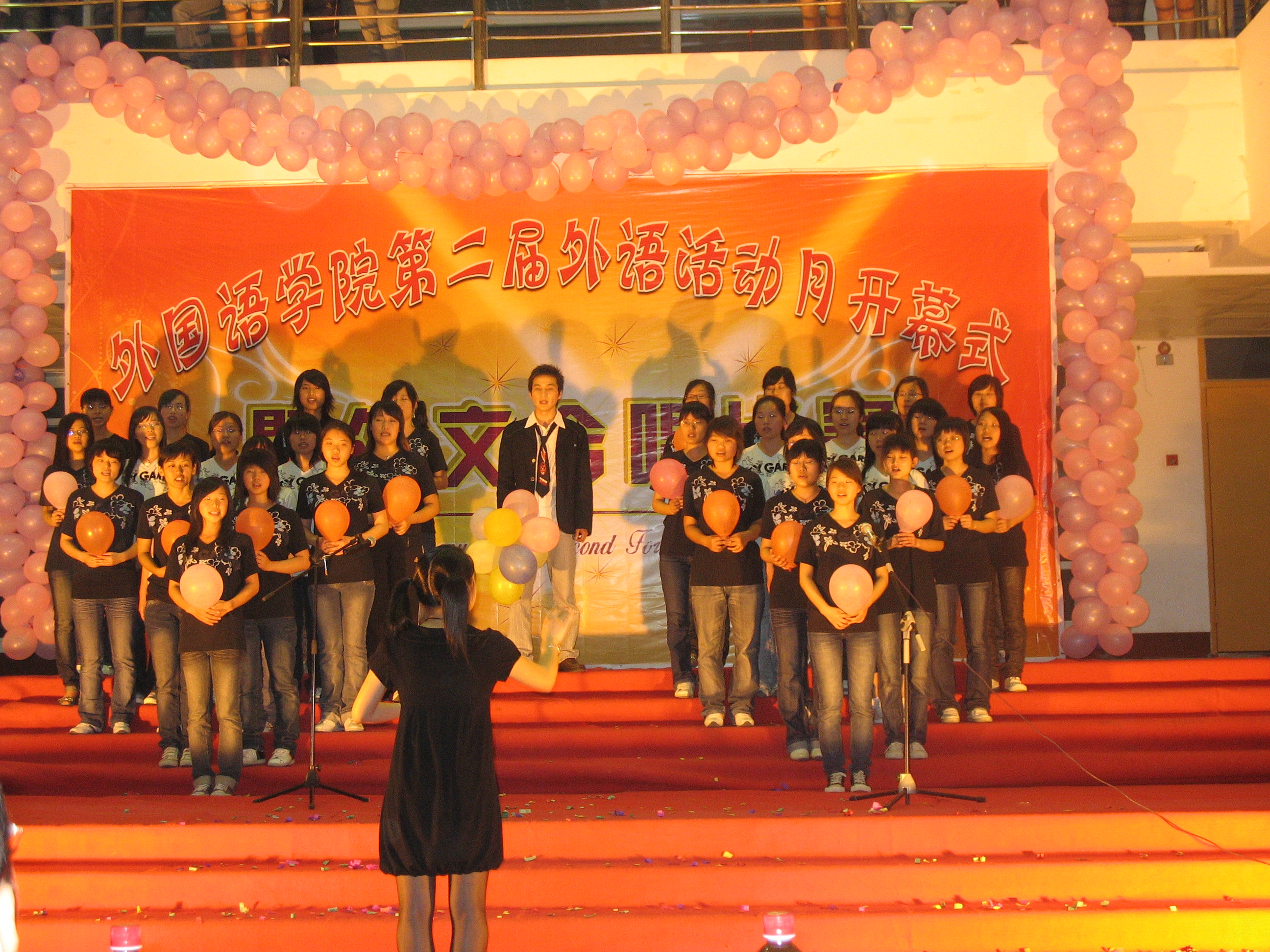 4月27日晚,外国语学院在俊秀文学院举办第二届外语活动月开幕式暨外文合唱比赛。