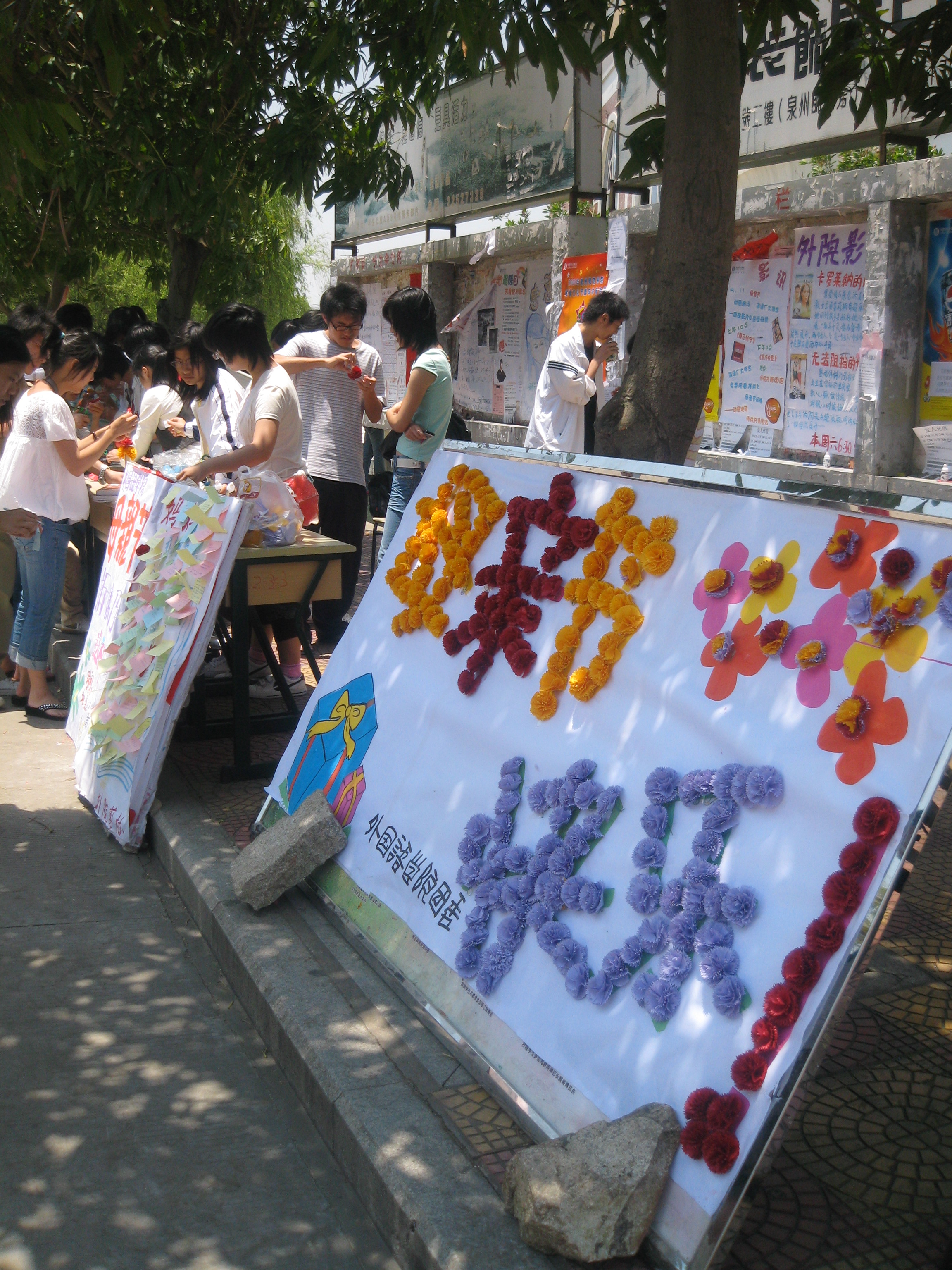 5月10日,在母亲节来临之际,外国语学院及剪纸协会在奎生超市门口举办了“折康乃馨 献祝福”活动。朵朵缤纷的康乃馨,一句句“妈妈我爱您!”“祝天下母亲平安幸福!”等充满感恩母爱的话语,表达了同学们对母亲的感恩之情。