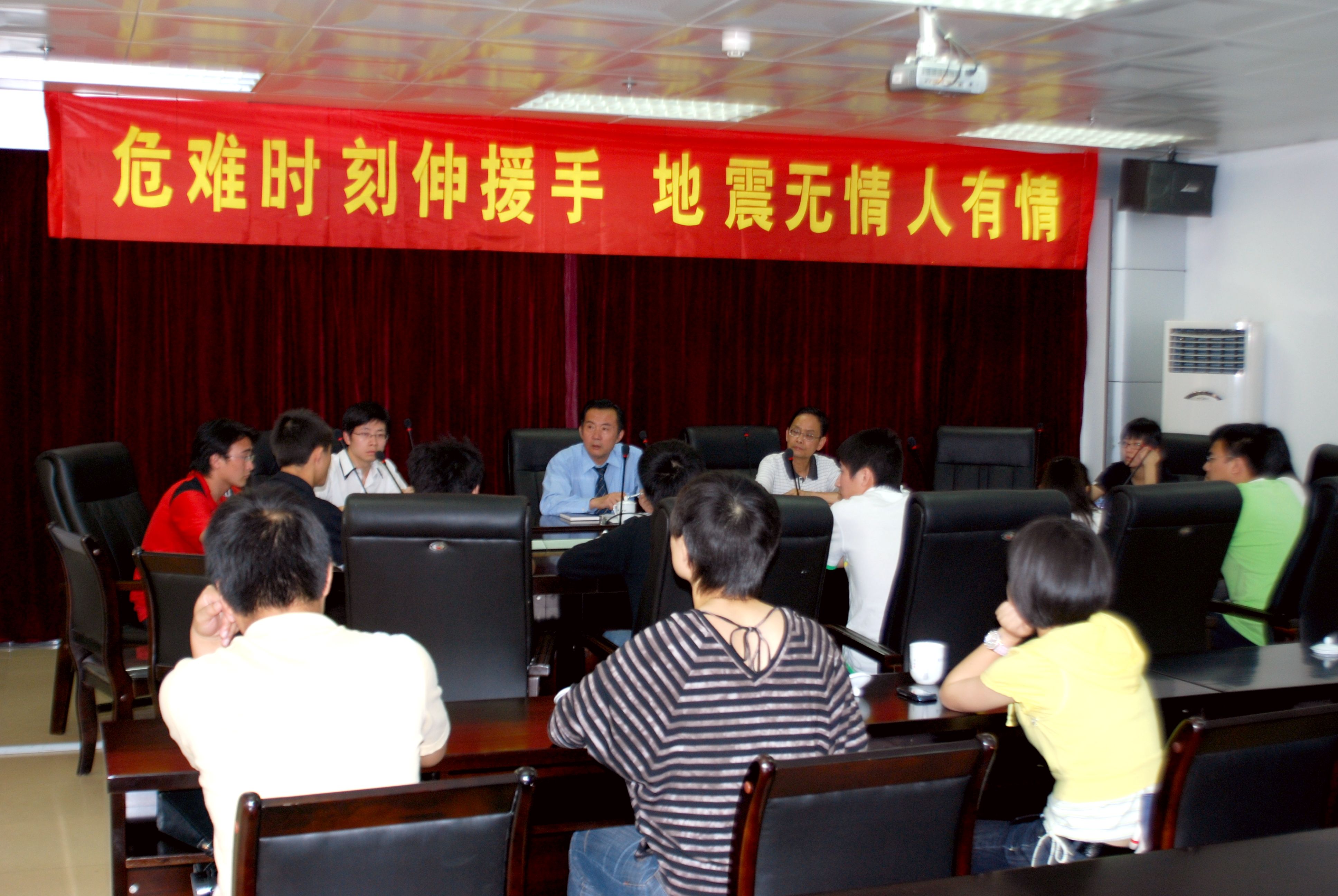座谈会上,学生处处长傅子信首先通报我校理工学院詹鹏同学刚刚与四川北川灾区的母亲取得联系的好消息。11名灾区学生分别介绍了自己家中的受灾情况。
