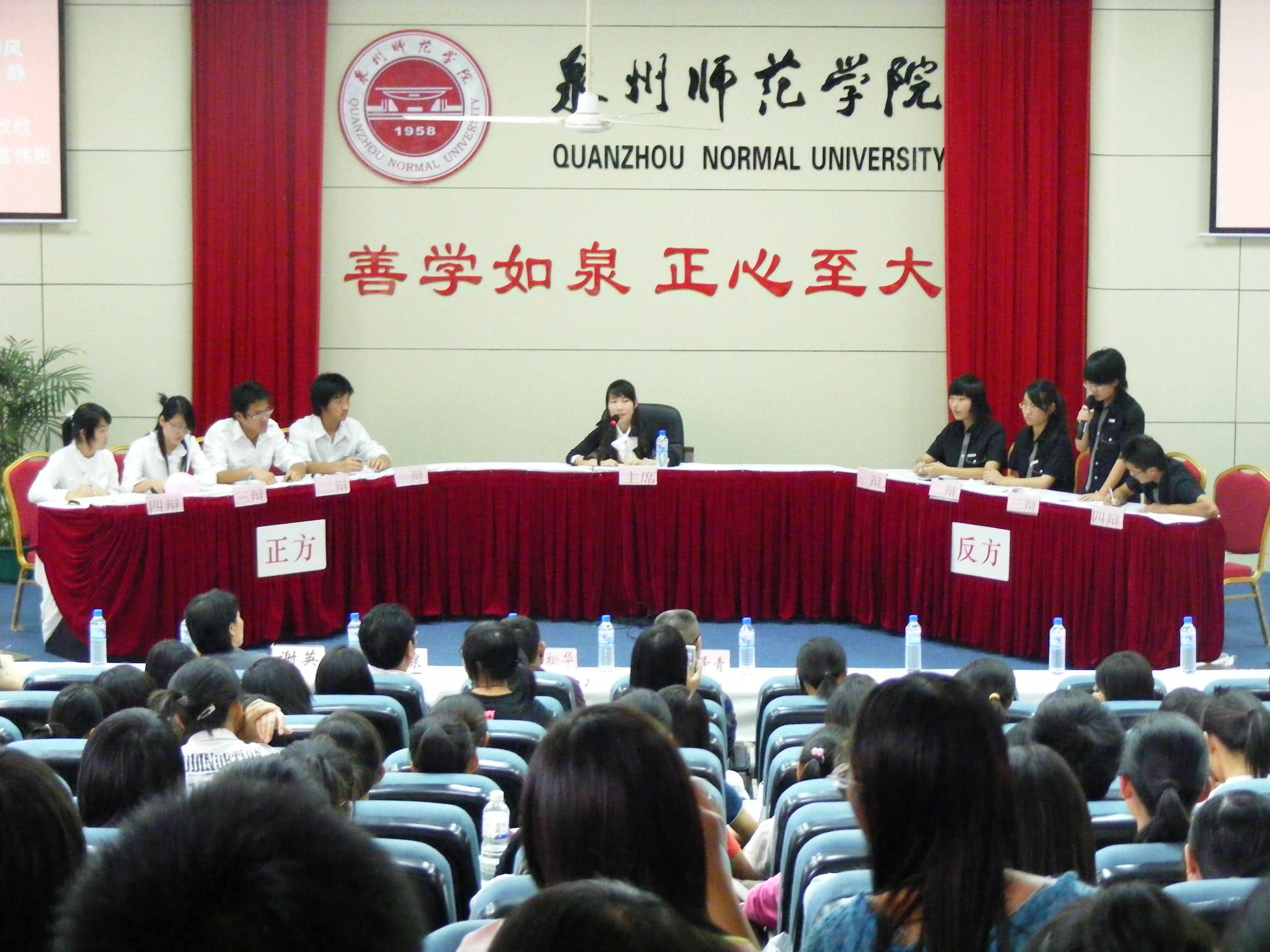 本次辩论赛以“知识积累与知识创新哪个更重要”为主题,正方07级历史紧抓辩题“知识积累比知识创新更重要”的“更”字,引经论典,辩论有理有据。反方的07级中文(1)班一开始就提出“知识创新的归宿是知识积累”这一观点。在比赛中,双方始终紧扣观点,机敏应战。双方精彩的表现得到评委的肯定。