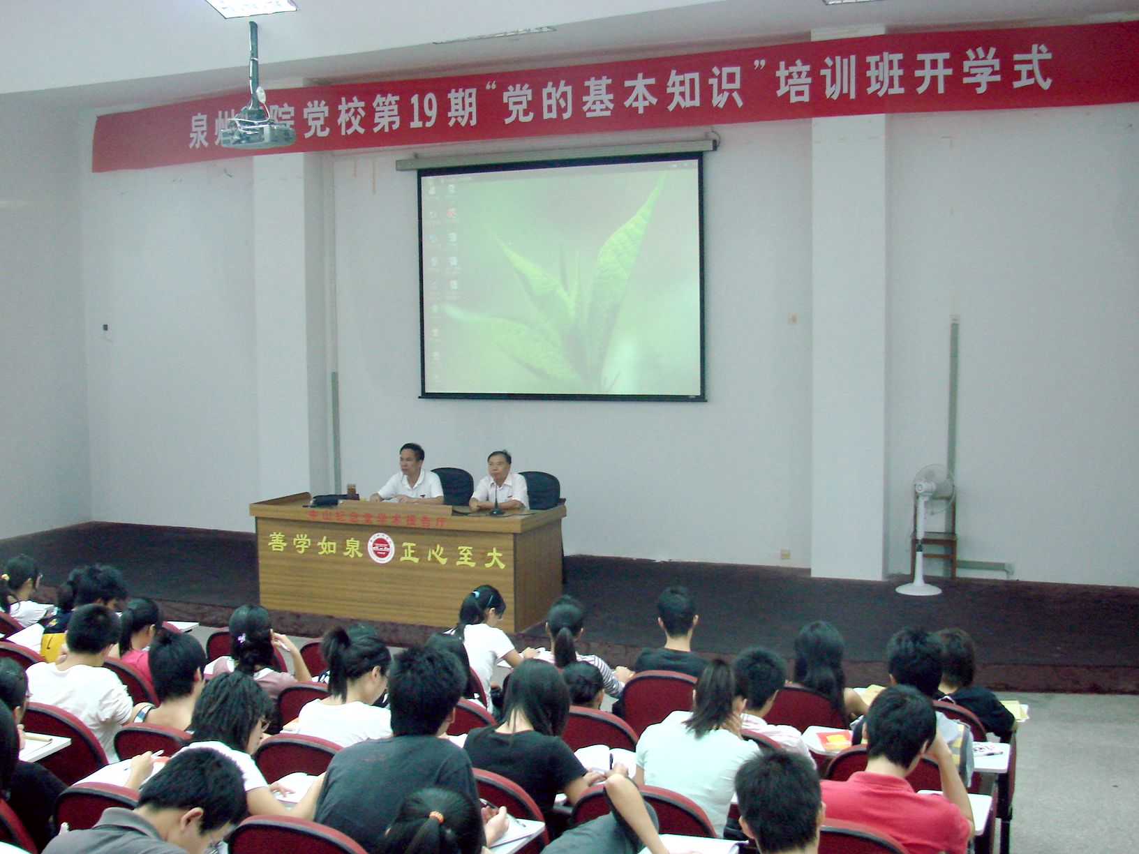 泉州师院党校第19期“党的基本知识”培训班开学式于10月9日在孙中山纪念堂第3学术报告厅(党校教室)举行。校党委副书记、纪委书记、党校校长赖新民出席了开学式并作动员报告。会议由校党委组织部部长陈亚兵主持。