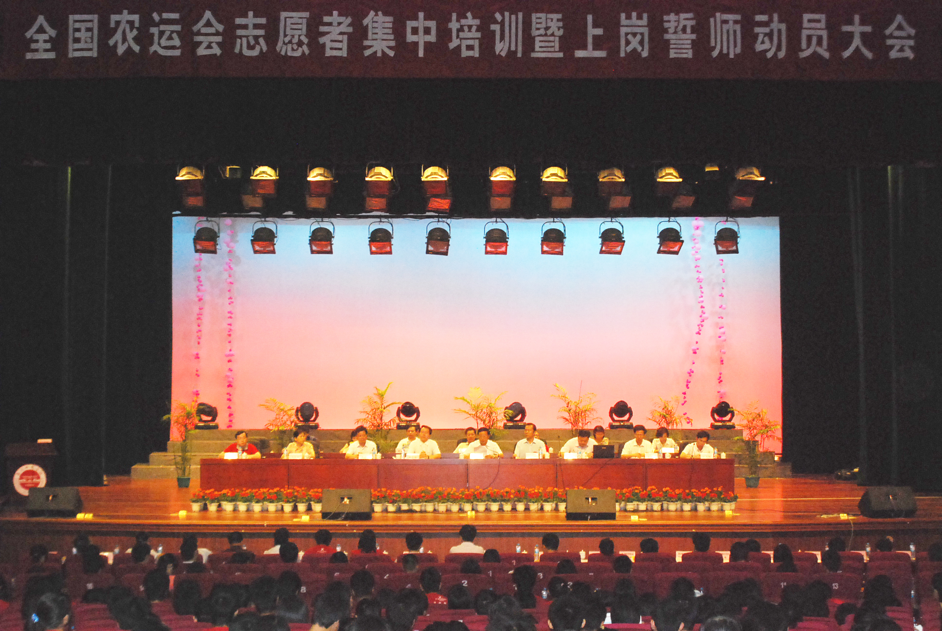 10月18日,第六届全国农运会志愿者集中培训暨上岗誓师动员大会在我校举行。市委常委、宣传部长、教育工委书记、全国农运会市筹委会副主任宋长青,我校党委副书记张舟,共青团泉州市委书记颜志煌,市教育工委副书记王瑞钦,本届农运会总策划刘清早教授及15所学校的1000多名志愿者骨干、重点岗位志愿者等参加了誓师大会。