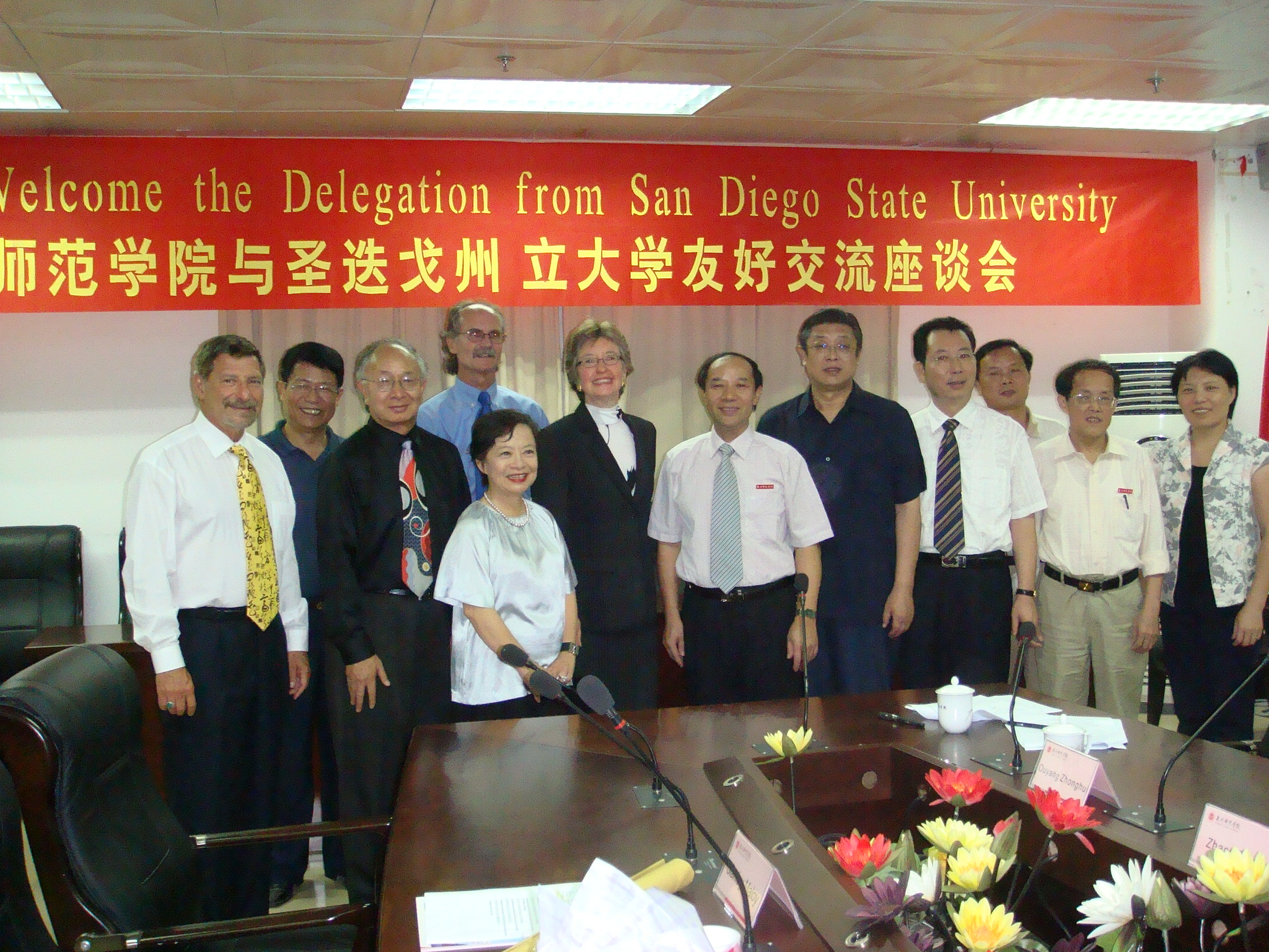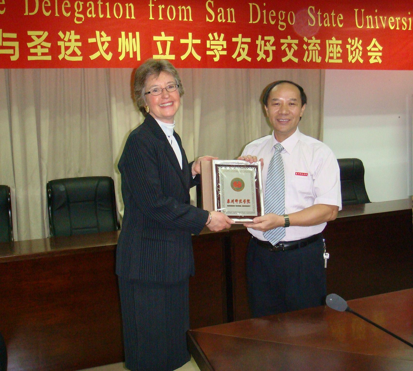 2008年11月2日下午,美国圣迭戈州立大学代表团一行5人在团长南希•玛兰执行校长的带领下访问我校。副院长林华东代表学校会见了代表团。两校举行了友好的交流座谈会,校办公室主任耿永泉主持了会议。我校部分师生代表参加了会议。