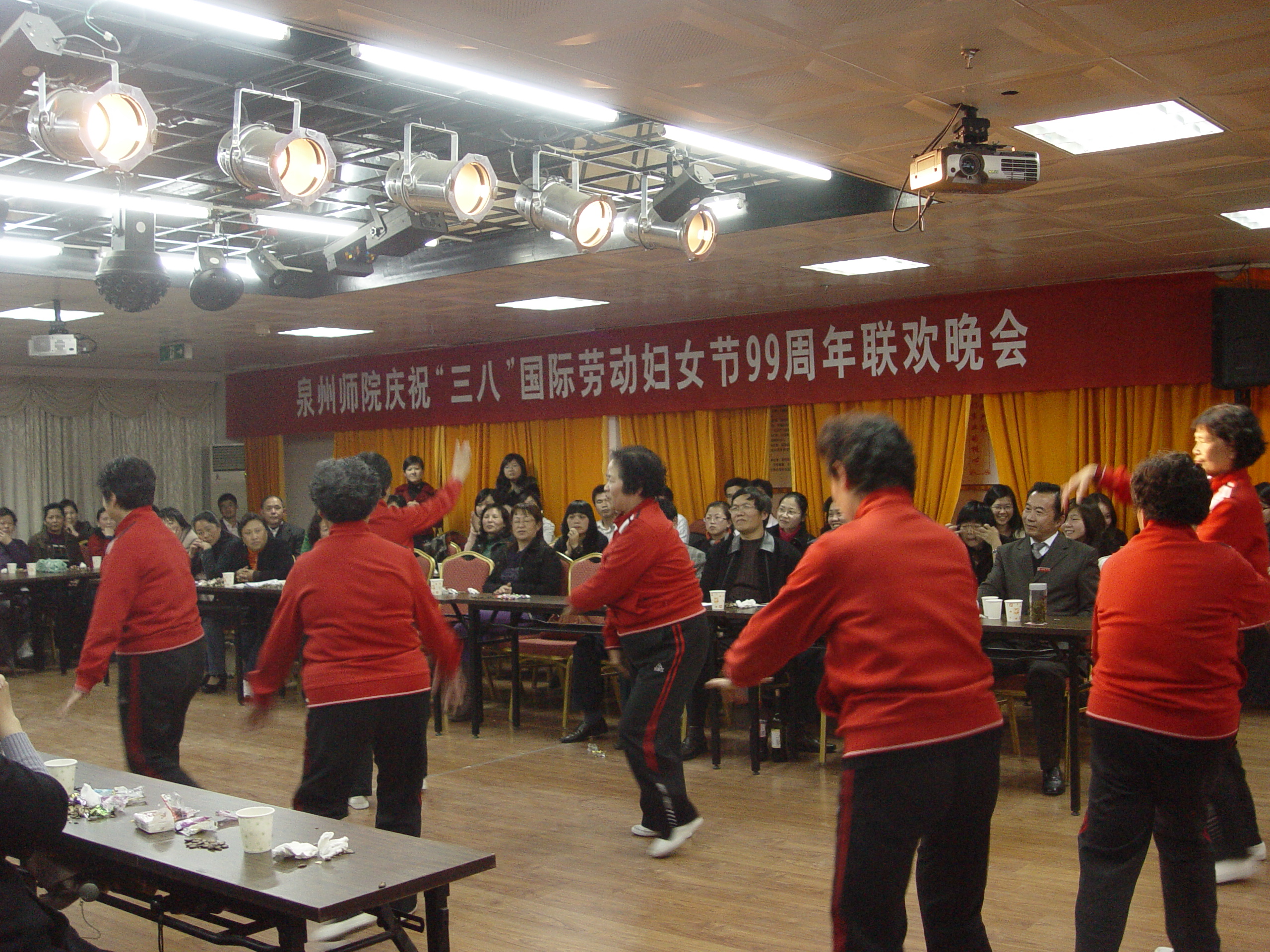 3月5日晚,校工会女工委在东海校区行政楼二楼会议室举办庆祝“三八”国际劳动妇女节99周年联欢活动。校党委副书记、校工会主席张舟到场祝贺。校、院两级工会领导及女工委成员、各二级学院女教授以及退休女教师代表等120多人参加了晚会。晚会形式多样,既有独唱、小组唱、舞蹈以及退休女教师们精彩的健身舞、街舞等节目,还穿插互动游戏、抽奖等丰富多彩的项目。