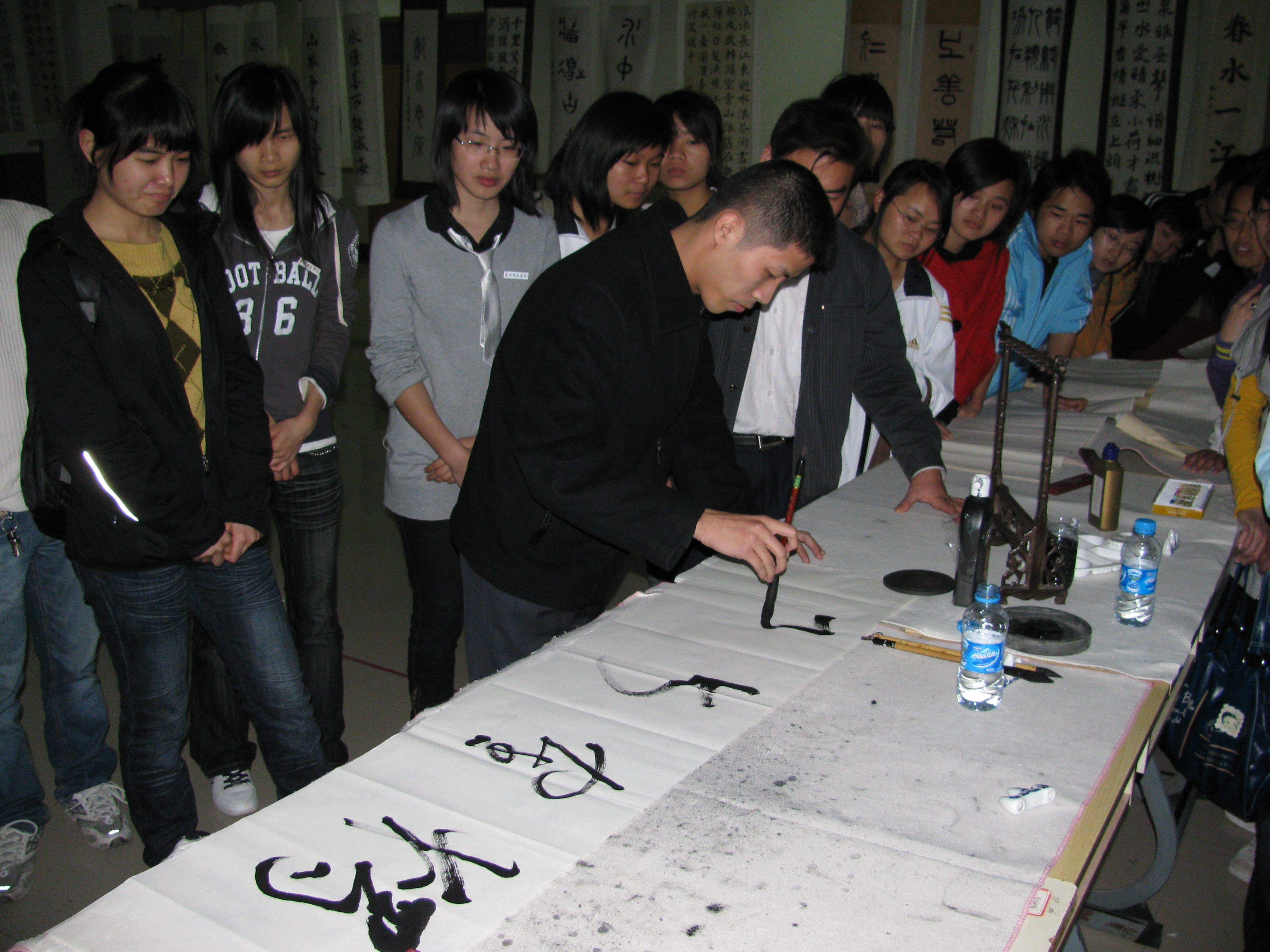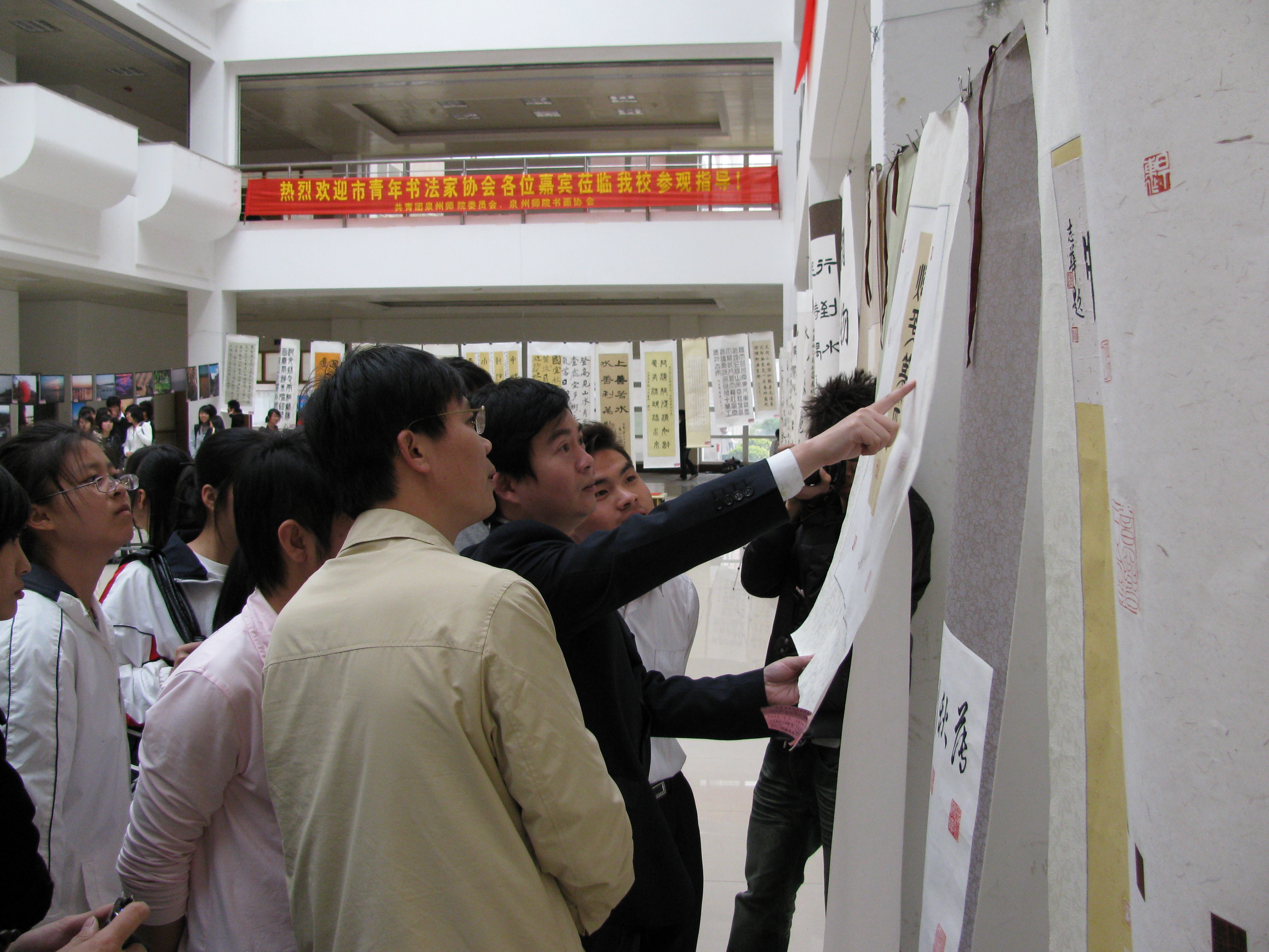 3月25日,校团委会、校书画协会邀请了泉州市书法家协会副主席蔡宗伟、泉州市青年书法家协会主席史晓方,副主席刘顺华等莅临我校参观书画展览并进行现场创作交流。校书画协会会员、人文学院书法专业师生以及书法爱好者参加了交流会。