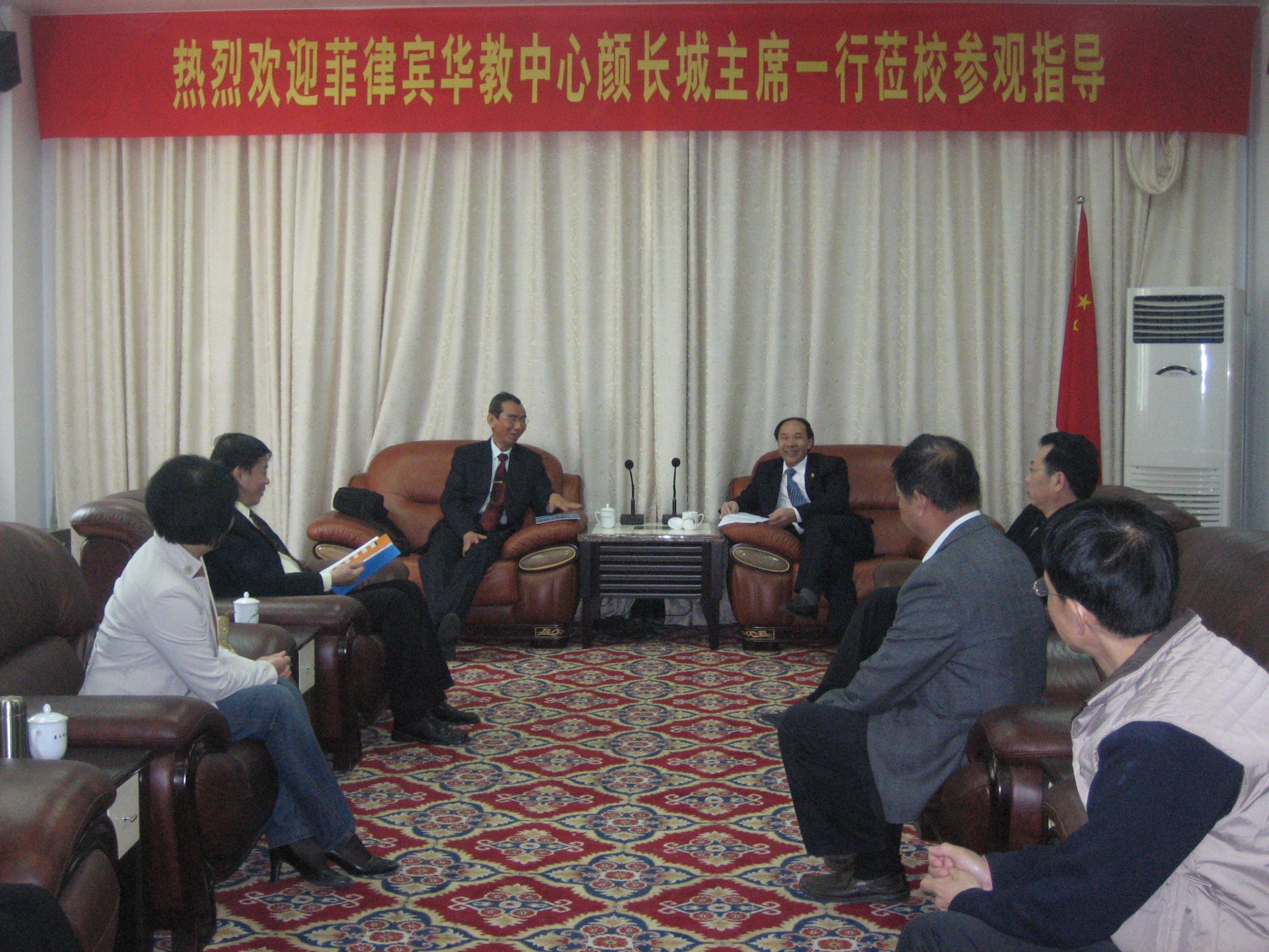 颜长城是第二次到我校访问,他对我校几年来的建设发展表示了赞赏。同时,颜长城也肯定了我校赴菲志愿者在菲律宾华校所起的积极作用,对我校给予菲律宾华文教育的支持表示衷心的感谢。颜长城还表示今后在华文教育领域将同我校开展更紧密的联系和合作。