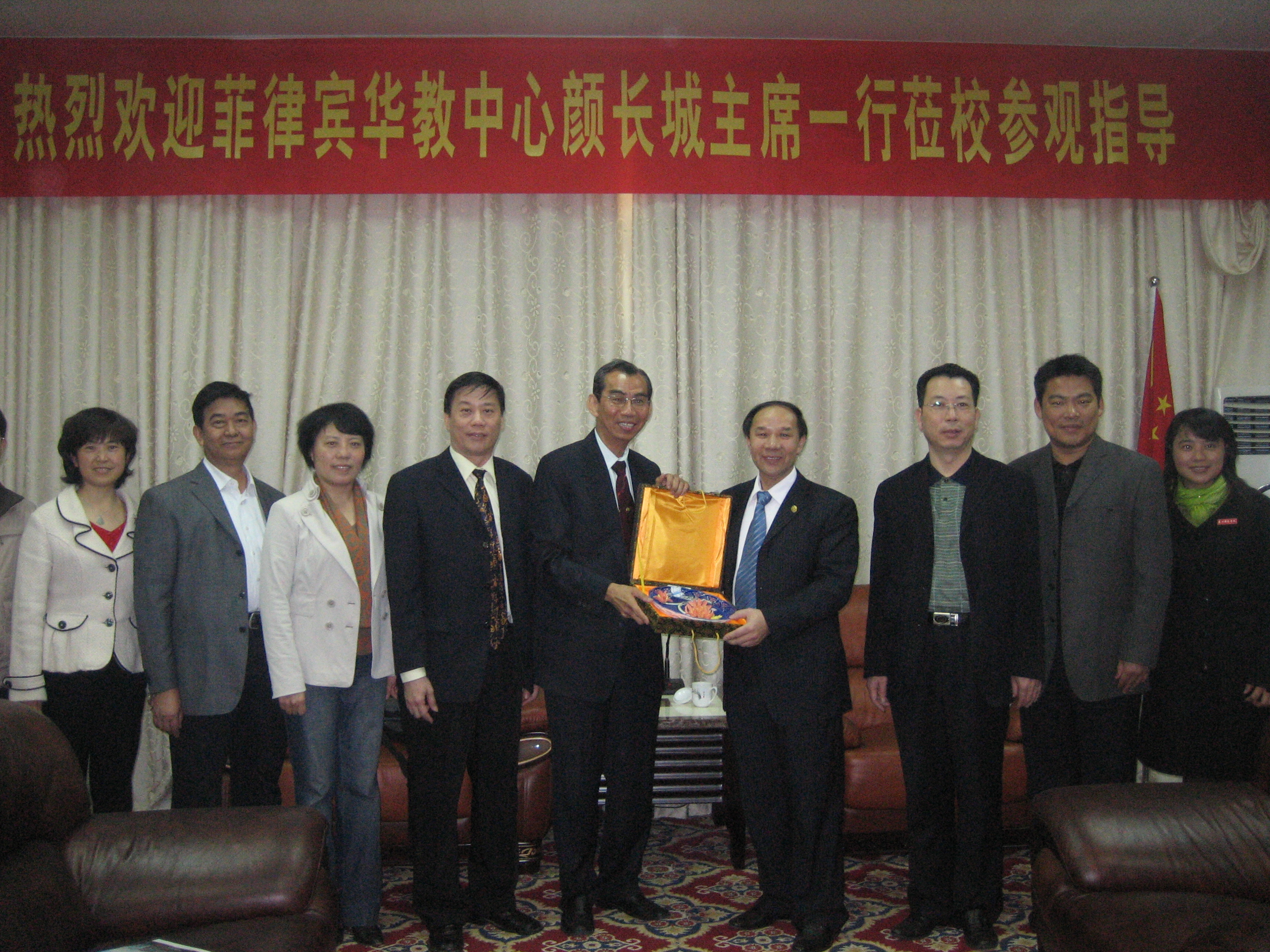 2009年4月3日下午,菲律宾华教中心颜长城主席、黄端铭副主席一行莅临我校访问。副院长林华东代表学校会见了客人,相关部门、人文学院党政负责人、对外汉语专业教师代表以及赴菲志愿者项目历任带队教师参加了会见和座谈。