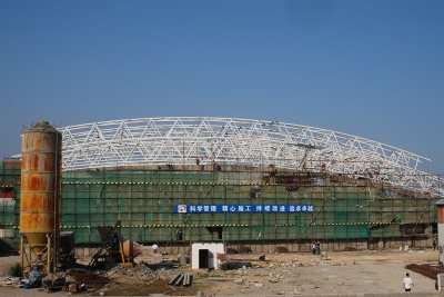 日前,我校明德体育馆完成跨度68.8米的屋面钢桁架吊装。据了解,明德体育馆正在加紧内外装修。地下室装修基本完成,预计年底可以竣工。