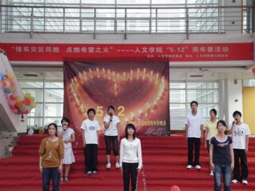 据悉,此次活动由人文学院团委会主办,人文学院爱心基金会承办。活动旨在于5.12地震一周年之际,深切缅怀5.12地震遇难同胞,宏扬众志成城抗震救灾精神,以进一步激发广大青年学生顽强拼搏的斗志,鼓励大家化悲痛为力量,从灾难的阴影中走出来,用自己的实际行动点燃希望之火,携手共创祖国的美好未来。(人文学院)