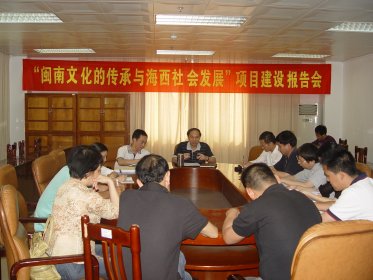 2009年5月26日下午,我校服务海西建设重点项目“闽南文化的传承与海西社会发展”建设报告会在行政楼四楼会议室召开。副校长林华东、市文化局非物质文化遗产保护办许进中、项目组成员参加了报告会。报告会由林华东主持。