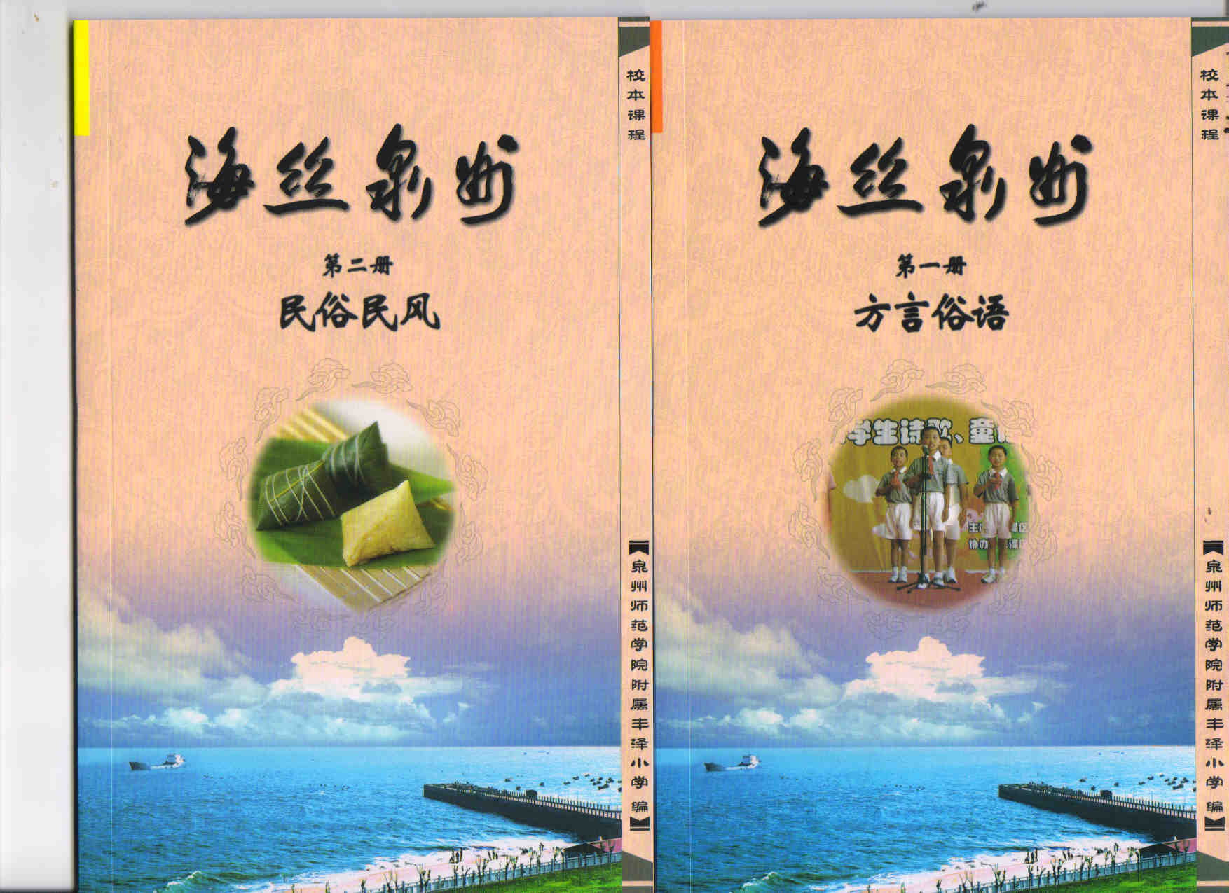 据悉,《海丝泉州》校本课程是以“海丝文化”为主体的闽南文化体系课程,旨在通过对该课程的开发与实施,更好保护海丝文化,传承闽南文化,为构建海峡西岸名城泉州,作出积极的努力和贡献。《海丝泉州》校本课程系列教材共分六册,分别是《方言俗语》、《民俗民风》、《名胜古迹》、《名人历事》、《曲艺文化》、《改革发展》等,可供小学一至六年级使用,目前,她是我市以“海丝文化”为主题的校本课程中,唯一一套内容最为齐全的系列教材,今年秋季将正式投入使用。(教育科学学院)